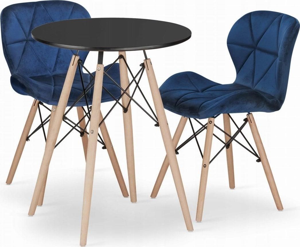 Leobert Zestaw Stół Okrągły Todi 60 Czarny + 2 Krzesła Lago Granatowe Opole