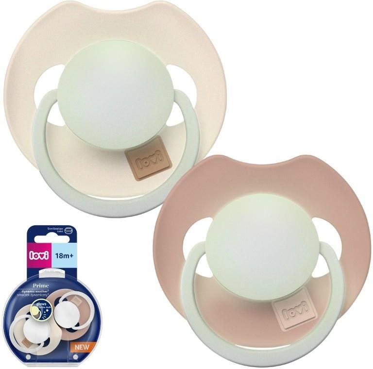 • Lovi Smoczek Silikonowy Dynamiczny Świecący W Ciemności Prime 18m+ 2szt. Blush/Ivory