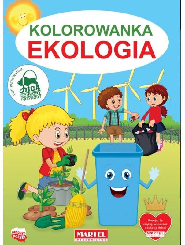 - Ilość stron: 32 - Format: A4 - Książeczka jest doskonałą pomocą dydaktyczną dla nauczycieli wychowania przedszkolnego i wczesnoszkolnego, ale nadaje się także idealnie do samodzielnej zabawy. - Co zrobić ze zużytymi bateriami? Dlaczego butelki i papiery wrzucamy do osobnych pojemników? Dlaczego przynosimy zakupy w papierowych torbach? Współczesny świat stawia przed odpowiedzialnymi rodzicami kolejne ważne zadania – wykształcenie w dziecku proekologicznej postawy i naukę odpowiedzialności za najbliższe otoczenie. Z naszą kolorowanką łatwiej zrozumieć takie pojęcia jak recykling, segregacja śmieci czy ekofarma, a także odpowiedzieć na pytania, czym jest elektrownia wodna, jakie są metody oszczędzania wody i energii, czy dlaczego powinniśmy chronić lasy. - Proste ćwiczenia i zabawy będą pomocne w uświadomieniu dziecku, jak ważna jest ochrona środowiska i co każdy może zrobić, by wspólnie ratować naszą planetę. - Książeczka, wydana pod patronatem Ligi Ochrony Przyrody, doskonale uzupełnia proekologiczną edukację przedszkolną i wczesnoszkolną.