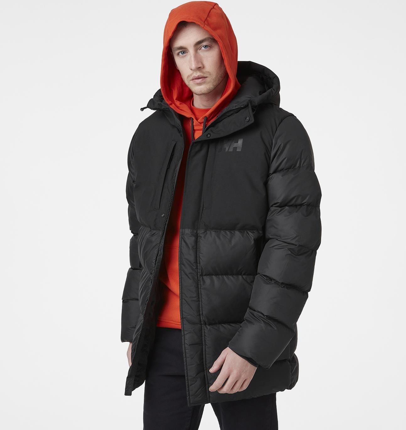 materiał:100% poliamid/100% poliester; podszewka: 100% poliester; wypełnienie: 95% poliester z recyklingu, 5% poliester; odporność na wodę: 15200/10600 mm; połączenie różnych materiałów sprawia, że kurtka wyróżnia się na tle innych modeli; zintegrowany kaptur z możliwością regulacji doskonale sprawdza się nawet przy silnym wietrze; wewnętrzna kieszeń pozwoli ukryć drogocenne drobiazgi; dwie kieszenie boczne z zamkami; dodatkowe kieszenie na piersi ułatwiają organizację; logo HH na piersi oraz na plecach podkreśla wysoką jakość modelu; ta ciepła kurtka z pewnością stanie się nieodzownym towarzyszem Twoich zimowych przygód.