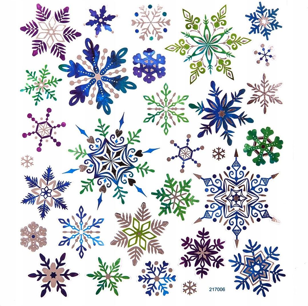 naklejki ozdobne - Śnieżynki firmy dpCraft Arkusz kolorowych, świątecznych naklejek to podstawa w zdobieniu wszelkich projektów. Polecamy do prac scrapbookingowych, kartek, pakowania prezentów, ozdabiania bilecików czy choinkowych dekoracji. Cechy towaru: wielkość arkusza: 15 x 17 cm, materiał: …