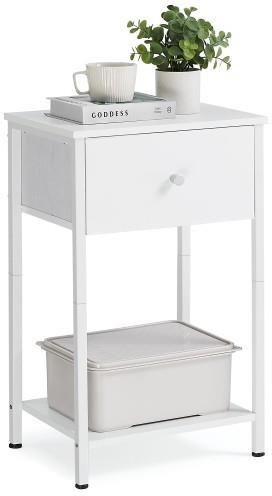 Szafka jest stabilna, a więc możemy umieścić ją obok łóżka trzymając na niej wszystkie rzeczy, które chcemy mieć pod ręką, a to wszystko dzięki temu, że szafka posiada również dolną półkę. Szafka nocna będzie idealna do przechowywania książek, budzików, kwiatów w doniczce, możemy też na niej wyeksponować nasze pięknie oprawione zdjęcia. Dodatkowym atutem szafki nocnej jest oczywiście szuflada, w której możemy przechowywać słuchawki, ładowarkę do telefonu, notatki, a nawet lekarstwa o ile do pomieszczenia nie mają dostępu dzieci. Szafka na pewno wpasuje się w wystrój niejednego pomieszczenia. Polecamy ją również do salonu. Metalowa konstrukcja zapewnia stabilność mebla. Zadbaj o estetykę swojego pokoju, sypialni, czy też salonu wybierając produkty sprawdzone, o najwyższej jakości wykonania. SPECYFIKACJA: Kolor: biały Materiał: płyta wiórowa, stal, włóknina Wymiary: 38,1 x 27,9 x 61 cm (szerokość x głębokość x wysokość) Waga: 3,7 kg Max. obciążenie szafki: 10 kg Max. obciążenie szuflady: 2 kg Max. obciążenie dolnej półki: 4 kg Dane logistyczne 1 x SKU 2373 waga 4,5 kg brutto - wymiary 44 x 31,5 x 10 cm.