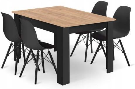 Oskar Zestaw Stół Prostokątny 120x80 Dąb Craft + 4 Krzesła Osaka Czarne Opole