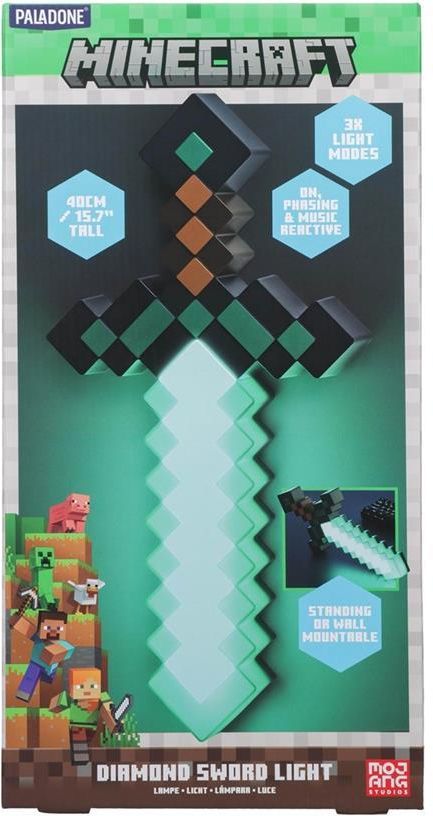 Minecraft Diamond Sword Light Ikoniczny „Diamentowy Miecz” z gry przeniesiony do Twojego pokoju. Lampka LED o wysokości 40 cm rozświetla stanowisko, buduje klimat i robi wrażenie na każdym fanie Minecrafta. Oficjalna licencja Minecraft / Mojang 40 cm wysokości — efektowna dekoracja pokoju gracza 3 …