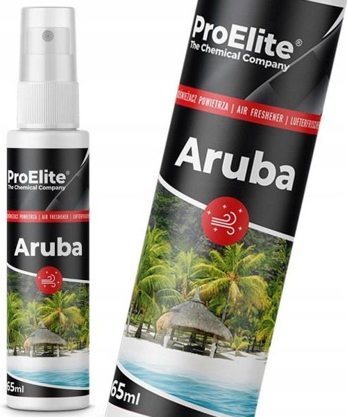 PROELITE ARUBA 65mlTrwały zapach do samochodu – piżmoIntensywny, mocny odświeżacz stworzony na bazie piżmowych zapachów. Długo utrzymuje się w powietrzu, pobudzając zmysły. Pasuje do każdego samochodu, wzbogacając jego wnętrze. Skutecznie neutralizuje nieprzyjemne zapachy. Nie pozostawia śladów na elementach wnętrza.Dedykowany do :Samochody osoboweTiRBusyOdświeżacz powietrza do samochodu - Jak stosować?Zaledwie dwa/trzy rozpylenia sprawią, że w samochodzie uniesie się przyjemny zapach i pozostanie w nim na długo. Wnętrze pojazdu pozostanie odświeżone, pachnące i eleganckie!Odświeżacz powietrza do auta - Gdzie stosować?Preparat przeznaczony jest dla wszystkich, którzy chcą, aby wnętrze ich samochodu pozostało odświeżone i pachnące na długo. Kompozycja zapachu podkreśli wyjątkowe wnętrze każdego samochodu. Zaleca się stosować na tkaninę, podsufitkę lub dywanik, aby zapach utrzymywał się długi czas.INFORMACJE SZCZEGÓŁOWE:Aruba to nowy odświeżacz powietrza o wysoce skoncentrowanej recepturze. Jego zapach jest intrygujący, mocny, zdecydowany, pobudza zmysły i daje chęć do działania. Można go stosować wszędzie tam gdzie istnieje potrzeba odświeżenia powietrza. Wyszukana receptura sprawi, że nieprzyjemne zapachy zostaną zneutralizowane, a na ich miejscu pozostanie unikalna nuta zapachowa. Produkt jest od razu gotowy do użycia.Typ:Produkt gotowy do użyciaWydajność:Wysoka – duże stężenie substancji zapachowychDostępne opakowania:65ml, 750mlDozowanie:W zależności od potrzeby, wielkości pomieszczenia, intensywności wentylacji. Standardowo stosować 2-3 rozpylenia.Bezpieczeństwo:Bez NTA – substancji rakotwórczychDziała w zakresie pH 4,95 – 5,15Trwały zapach do samochodu – piżmoTrwały odświeżacz powietrza do samochodu o piżmowych nutach zapachowych. Doskonale odświeża wnętrze pojazdu oraz neutralizuje nieprzyjemne zapachy. Głębokie nuty piżmowe pobudzają wszystkie zmysły i dodają chęci do działania.Niesamowicie pasuje do eleganckich wnętrz samochodu, podkreślając jego klasę. Wyjątkowy odświeżacz nie pozostawia śladów oraz nie osadza się na plastikowych elementach wnętrza. Zapach utrzymuje się bardzo długo, dzięki czemu za każdym razem będziesz czuł się komfortowo w swoim samochodzie.