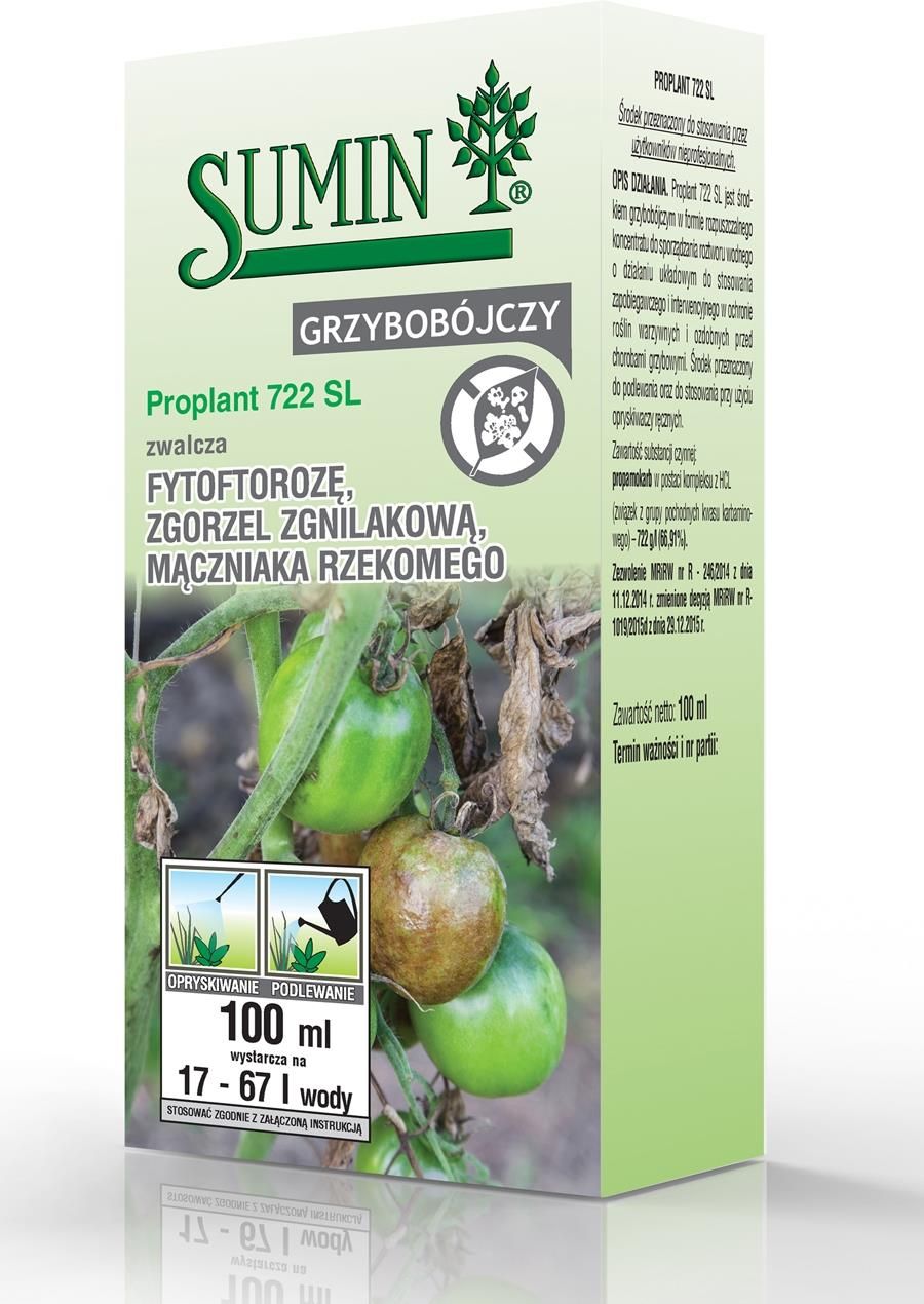 Proplant 722 SL 30ml Sumin Proplant 722 SL to skuteczny środek grzybobójczy, który stanowi niezbędny element w ochronie roślin ozdobnych oraz upraw. Dzięki swojej wieloskładnikowej formule w postaci płynnego koncentratu, preparat ten skutecznie zwalcza choroby grzybowe, zapewniając zdrowie i witalność roślin. Jego producent, firma Sumin, gwarantuje wysoką jakość i efektywność działania. Działanie preparatu Preparat działa na zasadzie układowego wchłaniania substancji czynnych, co pozwala na skuteczne zwalczanie chorób grzybowych. Kluczowym składnikiem aktywnym jest propamokarb, który działa zarówno kontaktowo, jak i żołądkowo. Dzięki temu Proplant 722 SL jest efektywny w przypadku interwencji oraz prewencji chorób, co czyni go wszechstronnym narzędziem dla każdego ogrodnika. Zastosowanie Preparat ten znajduje szerokie zastosowanie w ochronie roślin, co czyni go idealnym rozwiązaniem dla ogrodników. Można go stosować w różnych warunkach, aby zadbać o zdrowie roślin. Do najczęstszych zastosowań należą: zwalczanie fytoftorozy w cyprysikach Lawsona, ograniczenie występowania chorób w gerberach, zwalczanie zgorzeli zgnilakowej w poinsecjach, difenbachiach i pelargoniach, ochrona róż przed mączniakiem rzekomym, zwalczanie mączniaka rzekomego w sałacie, ogórkach i pomidorach, ochrona kapusty głowiastej i kalafiora przed mączniakiem rzekomym. Te zastosowania sprawiają, że preparat jest idealnym rozwiązaniem zarówno do upraw roślin ozdobnych, jak i warzyw. Zalecenia dotyczące stosowania Aby zapewnić skuteczność działania, kluczowe jest przestrzeganie zaleceń dotyczących stosowania środka. Preparat należy rozcieńczyć w wodzie w proporcji 30 ml na 10 litrów, co umożliwi uzyskanie cieczy użytkowej o stężeniu od 3 do 6 litrów na metr kwadratowy. Opryskiwanie roślin powinno odbywać się co 14 dni, aby skutecznie zapobiegać chorobom. Bezpieczeństwo Proplant 722 SL jest bezpieczny dla roślin ozdobnych oraz pszczół, co czyni go ekologicznym rozwiązaniem dla ogrodników. Należy jednak pamiętać o zachowaniu ostrożności: zaleca się używanie rękawic ochronnych oraz maski podczas aplikacji, aby zminimalizować ryzyko kontaktu z substancjami czynnymi. Przed każdym użyciem ważne jest również zapoznanie się z etykietą i zaleceniami dotyczącymi bezpieczeństwa. Preparat dostępny jest w opakowaniu o pojemności 30 ml, co ułatwia jego przechowywanie i aplikację. Produkt w formie rozpuszczalnego koncentratu można łatwo stosować przy użyciu opryskiwaczy ręcznych lub w formie podlewania. Czas ochrony po aplikacji wynosi do 4 tygodni, co zapewnia długoterminową ochronę przed chorobami grzybowymi.