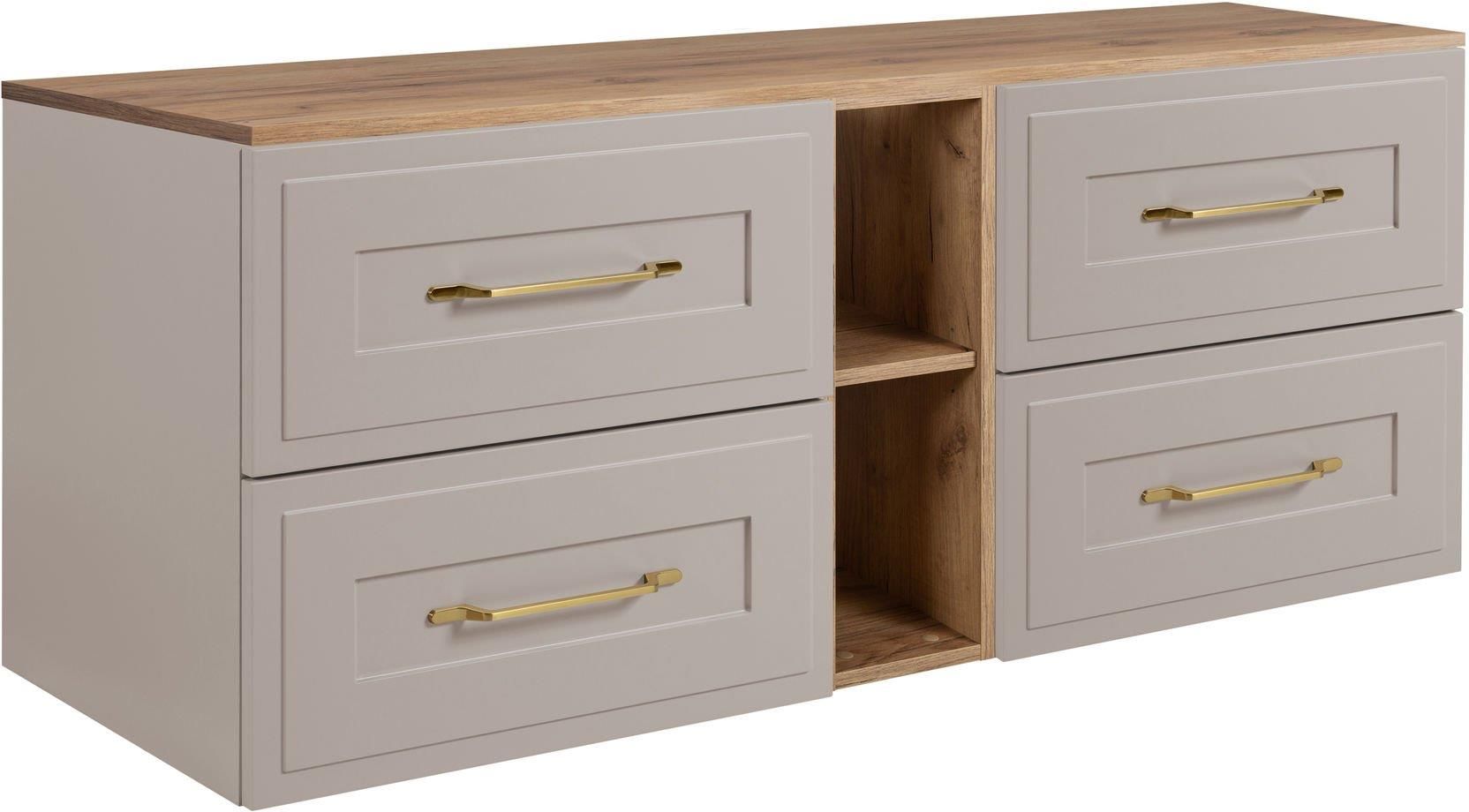 Rodan Zestaw Mebli Łazienkowych Classic Z Szafkami Podumywalkowymi 80Cm Kaszmir Szafką Otwartą Blatem 180Cm Dąb Opole