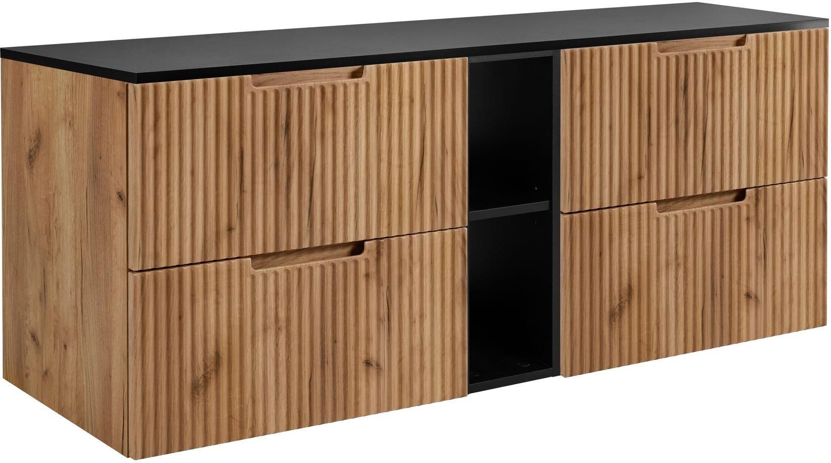 Rodan Zestaw Mebli Łazienkowych Vena Z Szafkami Podumywalkowymi 80Cm Dąb Craft Szafką Otwartą I Blatem 180Cm Czarny Opole