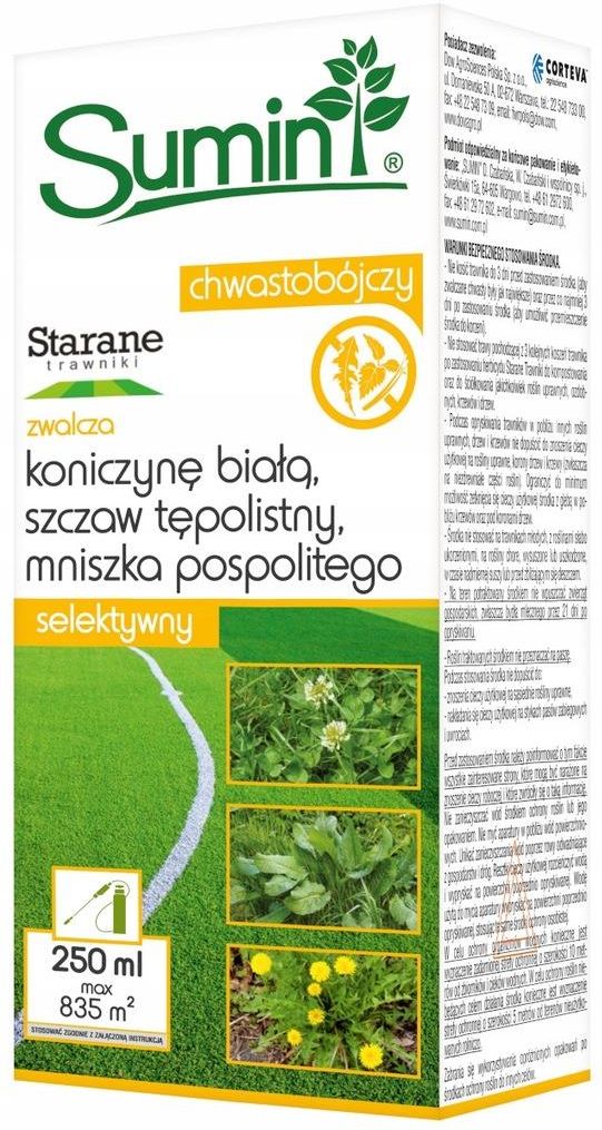 STARANE TRAWNIKI 250 ml Sumin Starane trawniki Środek na chwasty na trawniku 250 ml Środek chwastobójczy w formie płynu (emulsja olejowa w wodzie) do sporządzania emulsji wodnej stosowany nalistnie, przeznaczony do powschodowego zwalczania chwastów dwuliściennych na trawnikach, boiskach sportowych …