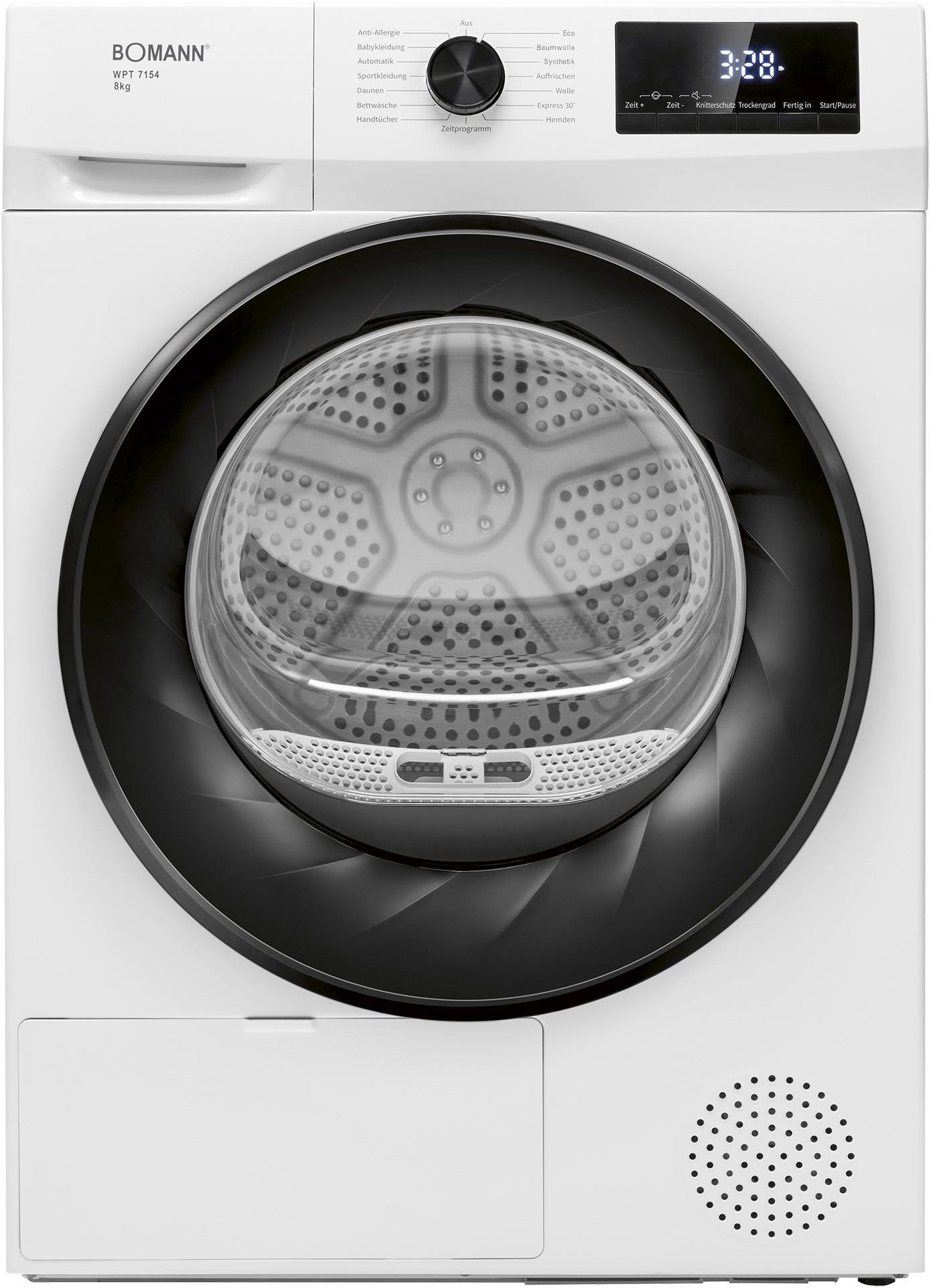 Suszarka bębnowa z pompą ciepła Bomann WPT 7154 (biała) Kondensacyjna 8 kg Bomann WPT 7154 to nowoczesna suszarka bębnowa z pompą ciepła, zaprojektowana z myślą o użytkownikach, którzy oczekują maksymalnej wygody, niskiego zużycia energii oraz delikatnego traktowania odzieży. To urządzenie łączy …