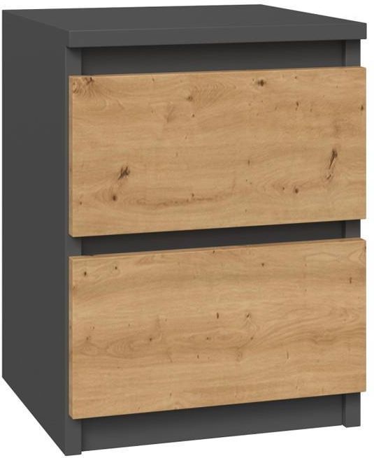 NOWOCZESNA SZAFKA / STOLIK NOCNY 2 SZUFLADY SERIA: MALWA MODEL: M1 KOLOR: ANTRACYT / DĄB ARTISAN Niezbędnym elementem każdej sypialni są szafki nocne. Okulary, ulubiona książka czy telefon, muszą być zawsze pod ręką. Dlatego nasze szafki nocne, to idealne rozwiązanie. Uniwersalny wygląd sprosta oczekiwaniom wszystkich, którzy cenią połączenie prostoty i elegancji. Minimalistyczna konstrukcja Bezuchwytowe, fronty szuflad zapewniają wygodne użytkowanie i podkreślą modernistyczny charakter wnętrza. Bardzo dobra jakość wykonania Nowy typ okuć, gładkie boki bez zaślepek Polski producent MATERIAŁ Korpus - płyta wiórowa laminowana. Obrzeża – wykończone tworzywem ABS (charakteryzującym się dużą wytrzymałością mechaniczną i chemiczną) Szuflady – na prowadnicach rolkowych to gwarancja wygodnego, a przede wszystkim bezpiecznego użytkowania. WYMIARY Głębokość: 32 cm Szerokość: 40 cm Wysokość: 59 cm Użytkowanie: Powierzchnię mebla czyścić przy pomocy miękkiej szmatki. Unikać stosowania silnie działających środków chemicznych. W opakowaniu: Instrukcja montażu wraz ze wszystkimi potrzebnymi akcesoriami montażowymi. Meble są fabrycznie zapakowane do samodzielnego montażu. Pozostałe szczegółowe wymiary znajdują się poniżej w zakładce "Pliki" w postaci arkusza kalkulacyjnego.