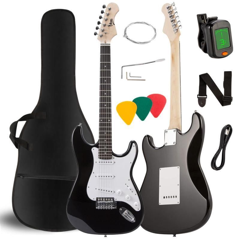 Gitara elektryczna V-TONE EG 39 BK – idealny wybór na start i nie tylko! V-TONE EG 39 BK to pełnowymiarowa gitara elektryczna typu stratocaster, stworzona z myślą o początkujących i średniozaawansowanych gitarzystach ✅. Dzięki klasycznemu układowi przetworników SSS oferuje szeroką paletę brzmień – od czystych solówek po dynamiczne riffy ✨. Solidny korpus z jaworu i gryf z klonu zapewniają trwałość i komfort gry w każdych warunkach⚡. Stylowy czarny połysk i biała płytka maskująca nadają jej nowoczesny wygląd – idealny zarówno na występ, jak i do domowego studia ✔️. W zestawie gitara elektryczna, pokrowiec, pasek, przewód jack 6,35 mm - jack 6,35 mm, tuner, 3 kostki do gry, zapasowe struny, ramię tremolo, 2 klucze imbusowe. ⭐ Kompletny zestaw dla gitarzysty – wszystko, czego potrzebujesz na początekWraz z gitarą otrzymujesz cały niezbędny osprzęt – tuner, kostki, przewód jack-jack 6,35 mm oraz ramię tremolo, co pozwala rozpocząć grę natychmiast po rozpakowaniu ✅. Pokrowiec i pasek umożliwiają wygodne przenoszenie instrumentu do szkoły muzycznej, na próby lub lekcje prywatne ✨. Zapasowe struny i klucze imbusowe gwarantują, że jesteś przygotowany na każdą sytuację – od regulacji mostka po wymianę struny⚡. To wszystko w jednej paczce o łącznej wadze tylko 6,5 kg – idealnej do transportu ✔️. ⭐ Brzmienie, które inspiruje – pasywne przetworniki S-S-S i 5 pozycji przełącznikaUkład trzech przetworników Single Coil pozwala uzyskać klasyczne brzmienie rocka, bluesa czy funku – świetne do ćwiczeń i pierwszych występów ✅. Dzięki 5-pozycyjnemu przełącznikowi możesz z łatwością przełączać się między różnymi kominacjami przetworników ✨. Regulacja głośności i dwa pokrętła barwy dają pełną kontrolę nad brzmieniem⚡. To świetny wybór zarówno do domowego grania, jak i nauki w szkołach muzycznych czy na warsztatach. ✔️ ⭐ Solidność wykonania i komfort gry – jakość, na której możesz polegać Pełnowymiarowy rozmiar 4/4 i menzura 648 mm sprawiają, że gitara leży w dłoni naturalnie i wygodnie – nawet podczas dłuższych sesji ✅. Dwadzieścia dwa progi, wyprofilowany cutaway i chromowane, zamknięte klucze gwarantują precyzyjną intonację i szybki dostęp do wyższych dźwięków ✨. Gitara waży tylko 2,7 kg, co czyni ją wyjątkowo lekką jak na swój rozmiar i tym samym – idealną dla młodzieży i dorosłych⚡. Nie czekaj – sięgnij po V-TONE EG 39 BK i zacznij swoją muzyczną przygodę już dziś