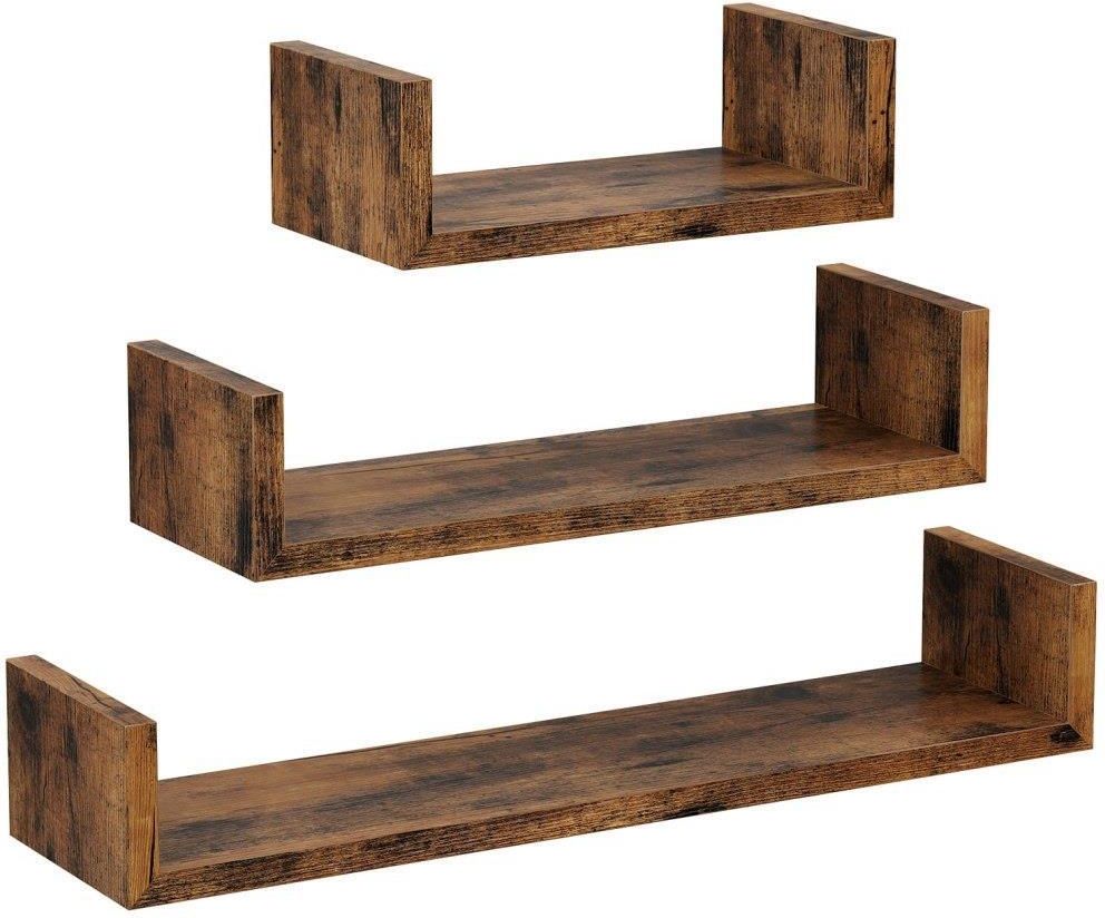 Zestaw 3 Półek Wiszących, z rantami, ciemne drewno, rustykalne- LWS066T01 Opole