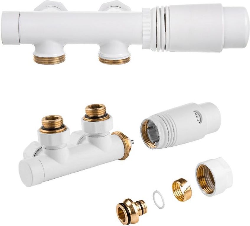 Zestaw do Dolnego Podłączenia Duoplex Biały: Wydajność i Elegancja w Jednym Zestaw grzejnikowy DUOPLEX w kolorze białym to idealne rozwiązanie dla tych, którzy poszukują niezawodności i estetyki w jednym. Oferuje on stały przepływ czynnika grzewczego, co ma szczególne znaczenie w przypadku instalacji zasilanych pompą ciepła lub kotłem bez buforu cieplnego. Jego minimalistyczny design sprawia, że doskonale komponuje się z nowoczesnymi aranżacjami wnętrz. W skład zestawu wchodzi: Przyłącza do Grzejnika (½) dla Instalacji z Miedzi 15 mm i PEX 16 mm: Zestaw ten obejmuje przyłącza, umożliwiające łatwe i efektywne podłączenie grzejnika do instalacji z rurami miedzianymi o średnicy 15 mm lub rurami PEX o średnicy 16 mm. To praktyczne rozwiązanie, które zwiększa wszechstronność zestawu, umożliwiając dostosowanie go do różnych systemów grzewczych. Głowica Termostatyczna M30 x 1,5: DUOPLEX zachowuje uniwersalność dzięki dołączonej głowicy termostatycznej M30 x 1,5. To doskonałe narzędzie do precyzyjnej kontroli temperatury w pomieszczeniu, zapewniając komfort użytkowania oraz oszczędność energii. Zestaw do Dolnego Podłączenia Duoplex Biały to nie tylko funkcjonalny element, ale również estetyczny dodatek do każdego wnętrza. Jego prostota i nowoczesny design sprawią, że stanie się on integralną częścią eleganckiej aranżacji, gwarantując zarówno wydajność, jak i estetykę.