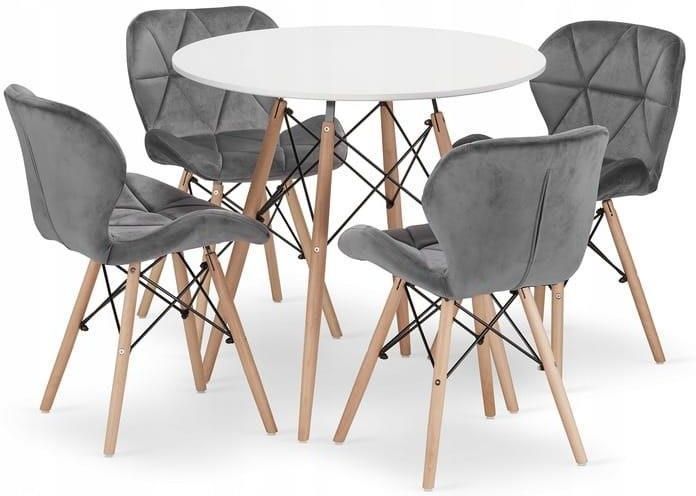 Zestaw stół z krzesłami: stół okrągły TODI 80cm biały + 4 krzesła LAGO szare Opole