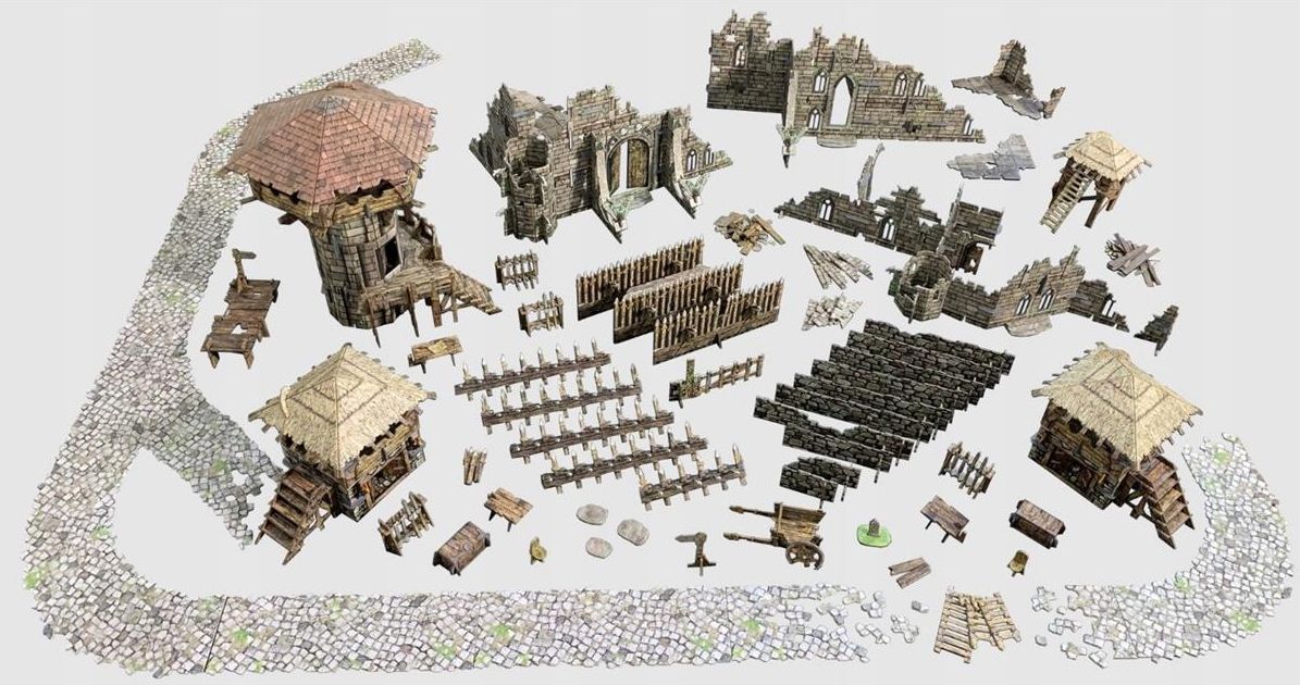 Fantastyczny zestaw dodatków do Twojej bitwy! Bitwy z rzadka toczone są na otwartym polu tym bardziej, gdy są serią zasadzek. W ruinach starych miast i zamków takie zasadzki czekają na każdego śmiałka, który zapuści się zbyt daleko od bezpiecznych rubieży własnego miasta. Na każdego, kto ośmieli się wstąpić na taki teren, będą czekać szybko zbudowane ostrokoły oraz czujny wzrok zwiadowców ukrytych w wieżach strażniczych. Zestaw Fantasy Battlefield od BattleSystems zawiera gotowe kartonowe elementy do złożenia dzięki którym, odtworzysz na Swoim stole pole prastarej bitwy. Może posłużyć zarówno do sesji RPG, jak i jako elementy zabudowy w grach bitewnych w skali 28 do 35mm. To pudełko zawiera wszystko, czego potrzebujesz do zbudowania planszy do gry Wszystkie elementy są modułowe i można je łączyć w dowolnej kombinacji, aby za każdym razem uzyskać inną konfigurację. Zestaw można rozbudować o inne zestawy terenowe z serii Battle Systems. Teren jest dostarczany w płaskim pudełku, wykonany na wysokim jakości kartonie, zadrukowanym w pełnym kolorze po obu stronach, więc nie wymaga malowania! Teren wymaga złożenia, a niektóre mniejsze elementy będą wymagały klejenia. Więcej informacji i pełne instrukcje można znaleźć na stronie producenta BattleSystems