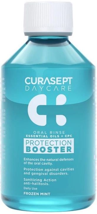 CURASEPT DAYCARE PROTECTION FROZEN MINT - płyn do płukania jamy ustnej z CPC Unikalna formuła chroni szkliwo zębów przed wirusami i bakteriami płytki nazębnej do 4 godzin po szczotkowaniu jamy ustnej. Wyjątkowy skład płynów do płukania CURASEPT Daycare Protection Booster wzmacnia naturalne siły …