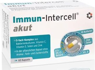 INTERCELL IMMUN KULTURY BAKTERII, ODPORNOŚĆ 60 KAPSUŁEK (suplement diety) Immun-Intercell® akut zawiera cztery bardzo ważne dla organizmu składniki odżywcze: witaminę C, cynk, selen oraz witaminę D, które wspierają prawidłową czynność układu odpornościowego. Taka kombinacja wzajemnie …