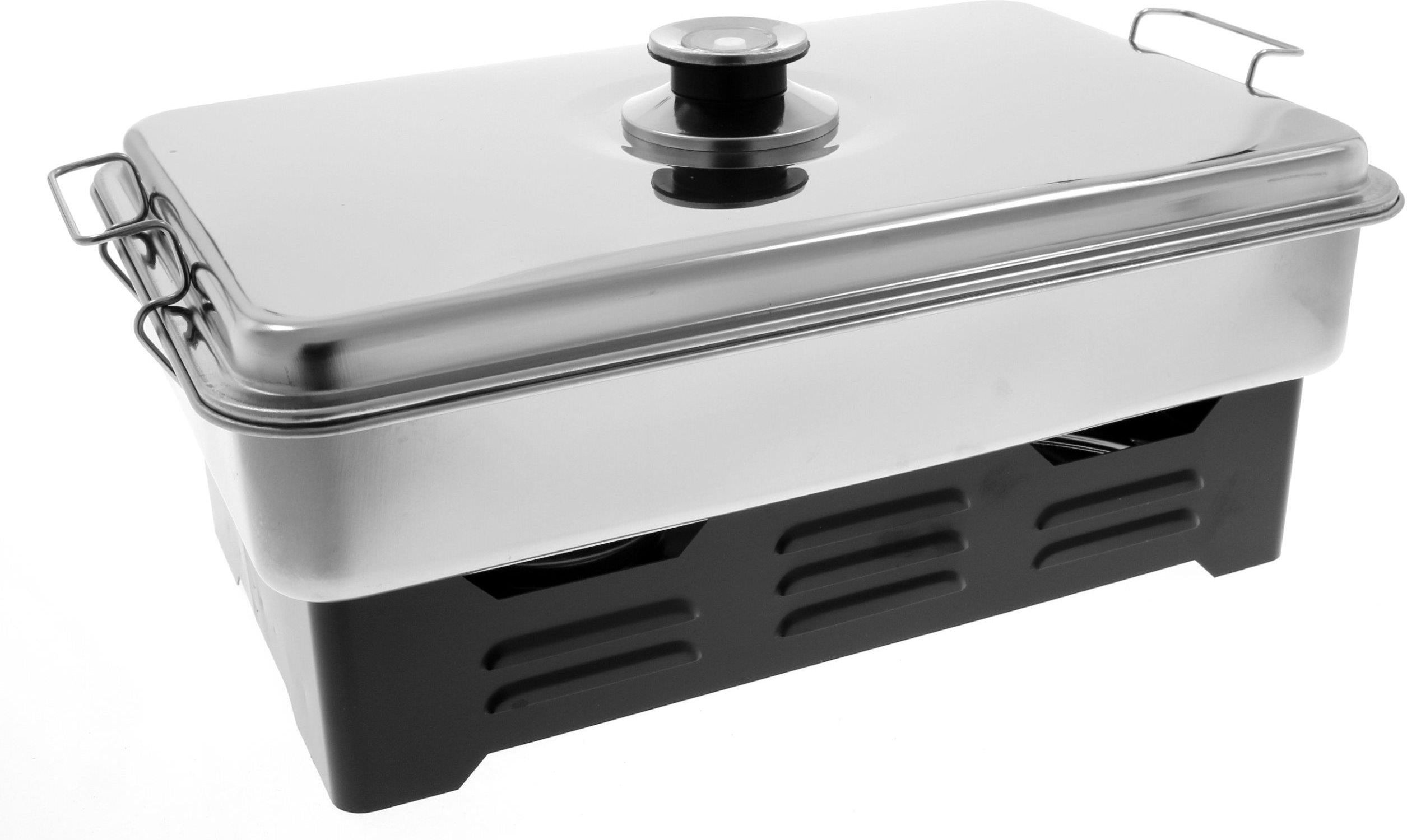 WĘDZARNIA BALKONOWA Z TERMOMETREM - KINGHOFF (KH-1180) Mała wędzarnia z wysokiej jakości stali nierdzewnej Idealna do wędzenia ryb, wieprzowiny, wołowiny, a nawet drobiu czy sera Wędzarnia przeznaczona do zasilania paliwem żelowym na dwa palniki Wyposażona jest w termometr, który pozwala na kontrolę temperatury podczas całego procesu wędzenia Łatwa do utrzymania w czystości Produkt nowy i nieużywany Skład zestawu Dolny i górny ruszt Tacka tłuszczowa z uchwytami Metalowa osłona Pokrywa z wbudowanym termometrem (0-100 st.C) Dwa palniki Instrukcja obsługi Wymiary Szerokość: 42,5 cm Głębokość: 27,5 cm Wysokość: 21 cm Waga: 3,10 kg Pojemność: np. 4 pstrągi Grubość stali: 0,6 mm / metalowa osłona: 0,75 mm