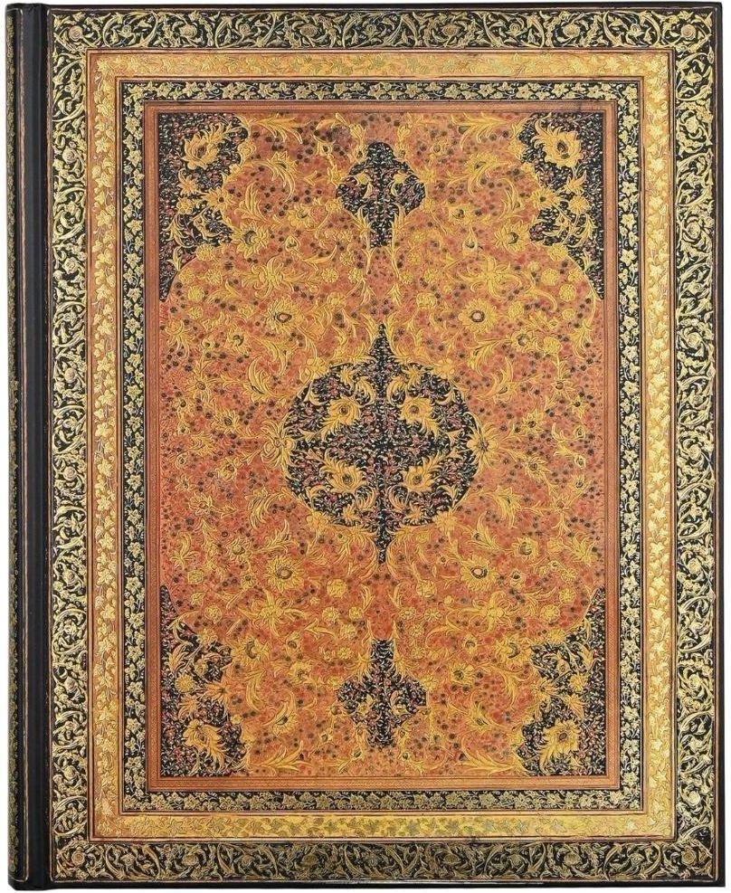 Duży, oryginalny notatnik firmy Peter Pauper Press Księga Królów (Book of Kings). Każdy notes marki Peter Pauper Press jest wyjątkowym dziełem sztuki. Bogactwo motywów i kolorów sprawia, że każdy znajdzie wzór idealnie dopasowany do osoby i okazji. Okładka z klasyczym wzorem, nawiązującym do skórzanych opraw starych ksiąg. Notatnik posiada tłoczenia i elementy pokryte złotą folią oraz złote brzegi stron. Szczegóły: sztywna, zdobiona złotą folią złocone brzegi stron zapewnia komfort pisania - notes jest zszywany, a po otwarciu leży płasko wewnątrz wstążka służąca jako zakładka kartki wykonane z wysokiej jakości papieru bezkwasowego niezwykle trwały, z cechami gwarantującymi długi czas użytkowania gramatura 120 gsm zadruk w jasnoszare linie, dwustronny, na lekko kremowym papierze wymiary: 18,4 cm x 22,9 cm ilość stron: 192