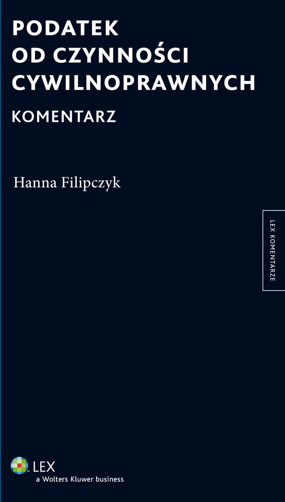 Hanna Filipczyk doktor nauk prawnych; doradca podatkowy specjalizujący się w sprawach spornych; członek Komisji Kody? kacyjnej Ogólnego Prawa Podatkowego i Międzynarodowego Stowarzyszenia Podatkowego w Polsce; prawnik lingwista w Trybunale Sprawiedliwości Unii Europejskiej; autorka dwóch monogra? i i kilkudziesięciu artykułów o tematyce podatkowej; obecnie współpracuje ze spółką doradztwa podatkowego Enodo Advisors. ? Komentarz stanowi aktualne i merytorycznie kompletne omówienie treści ustawy o podatku od czynności cywilnoprawnych. ? W książce zawarto m.in.: informacje na temat problemów interpretacyjnych, wynikających z ustawy o podatku od czynności cywilnoprawnych, wraz z ich rozwiązaniami; omówienie zmian w ustawie o podatku od czynności cywilnoprawnych, które wejdą w życie 1 stycznia 2016 r.; omówienie treści dyrektywy Rady 2008/7/WE z dnia 12 lutego 2008 r. dotyczącej podatków pośrednich od gromadzenia kapitału, w tym jej struktury i mechanizmu opodatkowania podatkiem kapitałowym; informacje na temat obszarów niezgodności polskiej ustawy o podatku od czynności cywilnoprawnych z dyrektywą; obszerny przegląd orzecznictwa organów interpretacyjnych i sądów administracyjnych oraz poglądów doktryny. ? Publikacja przeznaczona jest dla sędziów sądów administracyjnych orzekających w sprawach podatkowych, urzędników organów podatkowych, doradców podatkowych, radców prawnych i adwokatów specjalizujących się w sprawach podatkowych.