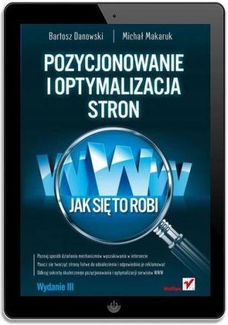 Czy o SEO i SEM wiesz już wszystko?? Sprawdź swoją wiedzę wypełniając quiz na facebooku » Poznaj sposób działania mechanizmów wyszukiwania w internecie Naucz się tworzyć strony łatwe do odnalezienia i odpowiednio je reklamować Odkryj sekrety skutecznego pozycjonowania i optymalizacji serwisów WWW Ta książka to obowiązkowa lektura każdego webmastera! Mówi się, że jeśli czegoś nie można znaleźć w sieci, to rzecz ta prawdopodobnie nie istnieje. W obecnych czasach nikt - a zwłaszcza żadna firma - nie może sobie pozwolić na internetowy niebyt. Jednak nawet najlepsza strona to jeszcze nie wszystko. Co z tego, że Twoja witryna będzie powalać jakością treści i grafiki, jeśli nikt nie będzie w stanie jej szybko (lub w ogóle) znaleźć w czeluściach sieci? Aby uniknąć tego przykrego scenariusza, tysiące webmasterów głowią się co dzień nad właściwym pozycjonowaniem swoich stron. Chcesz być o krok przed nimi? Sięgnij po właściwe źródło informacji! "Pozycjonowanie i optymalizacja stron WWW. Jak się to robi. Wydanie III" to książka niezwykła. Autorzy odważnie łamią tabu, dzieląc się z czytelnikami swoją dogłębną wiedzą i praktycznym doświadczeniem, uzyskanym w ciągu wielu lat pracy w branży SEO. Zaktualizowana treść pozwoli Ci nadążać za najnowszymi trendami w dziedzinie pozycjonowania i optymalizacji witryn. Z lektury poradnika dowiesz się, jak tworzyć i poprawiać kod stron, aby odnosiły one sukces w internecie, jak wykorzystywać sposób działania mechanizmów wyszukiwania i możliwości oferowane przez serwisy społecznościowe w celu zwiększenia ruchu na witrynie oraz jak zarabiać na swojej działalności sieciowej. Ostrzegamy: nie kupuj tej książki, jeśli chcesz, aby Twoja strona WWW była anonimowa! Zasady działania mechanizmów wyszukiwania Skuteczne metody pozycjonowania stron Właściwe projektowanie układu serwisu, systemu nawigacji i grafiki Wykorzystanie różnych rodzajów odsyłaczy Sposoby poprawiania indeksacji serwisu Techniki monitorowania ruchu na stronie Przegląd narzędzi przydatnych w pozycjonowaniu Masz ciekawą stronę? Naucz się, jak skutecznie pozycjonować ją w internecie!