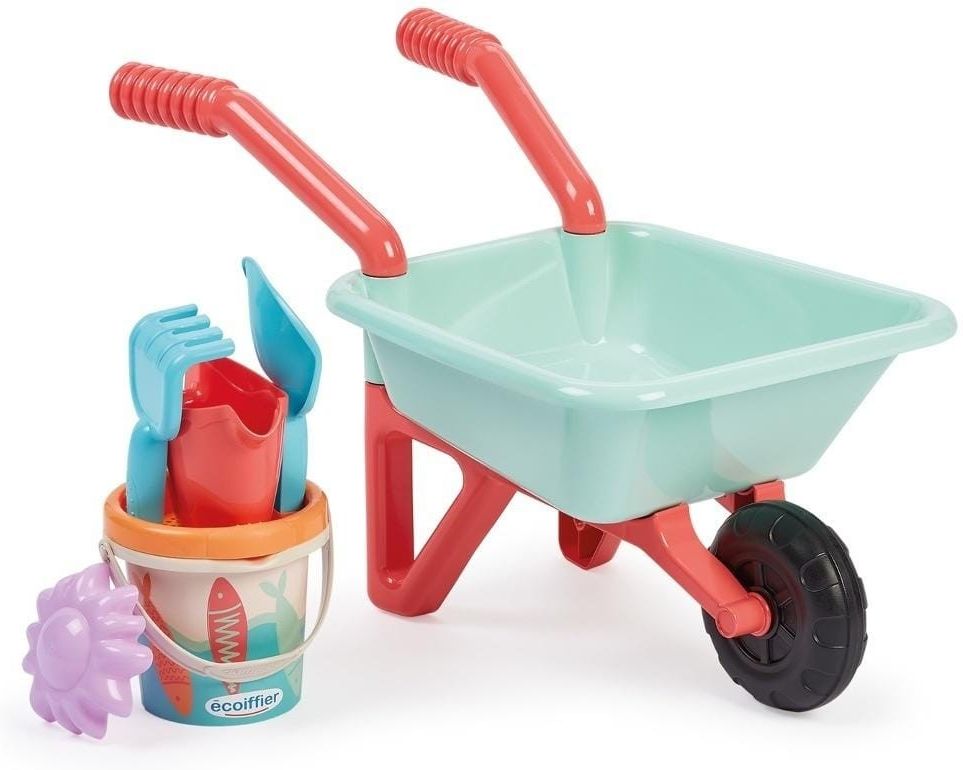Taczka z akcesoriami do piasku ean: 3280250002635 producent/wydawca: Simba wydanie: ,500x280 mm EC Taczka z akcesoriami do piasku \nTaczka z 1 kółkiem, w zestawie wiaderko 12 cm, łopatka, grabki, sitko oraz foremka do piasku. Wyprodukowane we Francji. \nWymiary TBC, 18m+ sygnatura 12408224