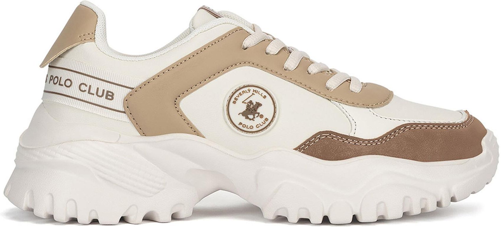 Idealne sneakersy dla kobiet, poszukujących stylu i komfortu! Beverly Hills Polo Club przedstawia beżowe sneakersy z wysokogatunkowego tworzywa syntetycznego, które gwarantują wytrzymałość i modny wygląd. Ich casualowy styl sprawia, że świetnie nadają się do codziennych stylizacji, dodając im elegancji i swobody. Konstrukcja przed kostkę zapewnia optymalne dopasowanie oraz wygodę noszenia przez cały dzień. Wybierz sneakersy Beverly Hills Polo Club i ciesz się wyjątkowym połączeniem klasyki i nowoczesności w każdej swojej stylizacji! Beverly Hills Polo Club to marka premium wprost ze słonecznej Kalifornii, która łączy w sobie przepych miasta Beverly Hills ze sportem. Od początku działalności, której początki sięgają lat 80., stawiała na elegancki design - produkty marki miały odzwierciedlać luksusowy styl życia Kalifornijczyków oraz sportowy minimalizm charakterystyczny dla polo. W ofercie marki Beverly Hills Polo Club znajdziesz więc komfortowe półbuty i sneakersy utrzymane w oryginalnej, sportowej stylistyce, które doskonale sprawdzą się jako uzupełnienie zarówno casualowych outfitów, jak i też tych bardziej wyszukanych. Odkryj więcej produktów marki w ofercie CCC!