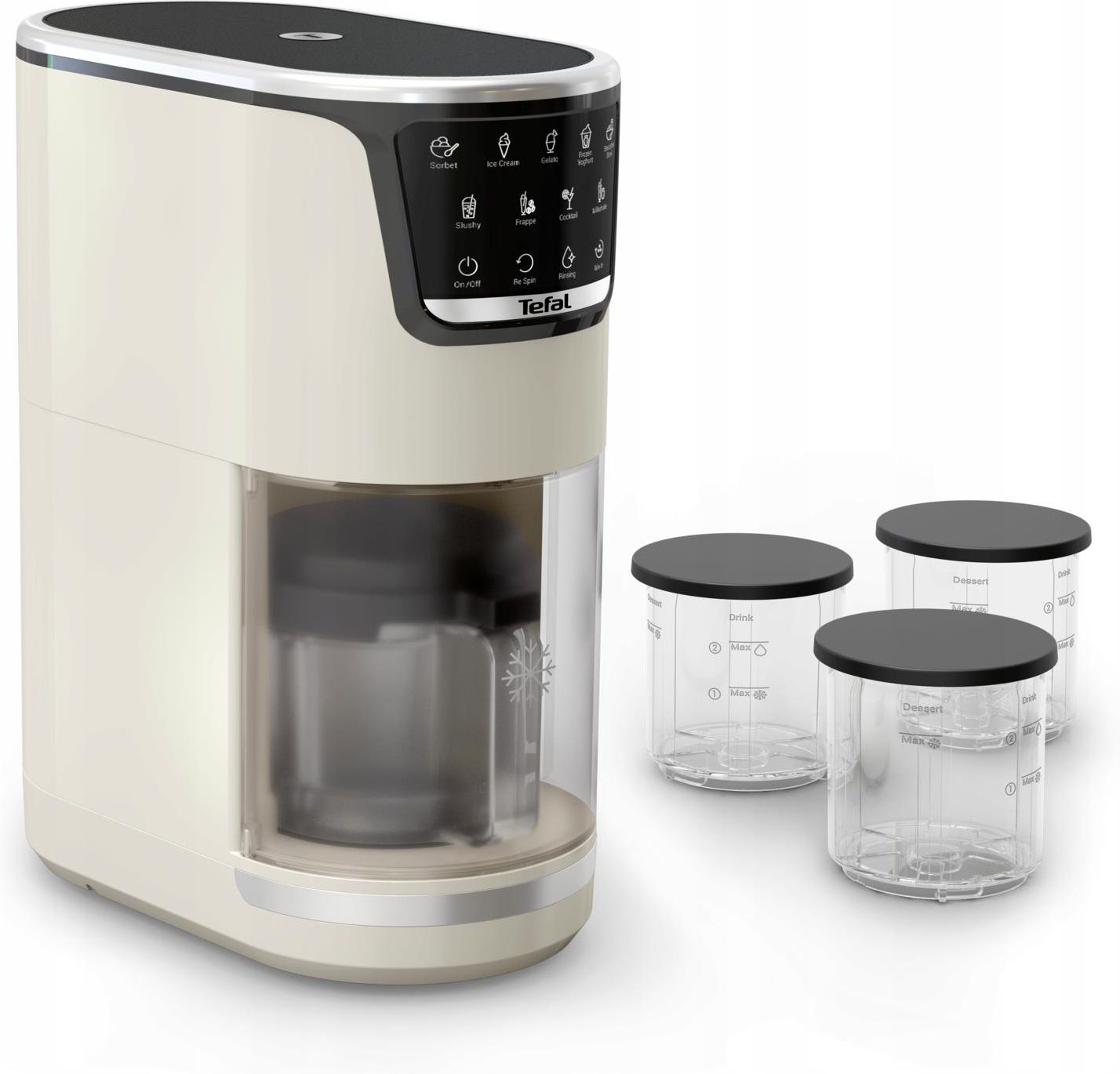 Maszyna do lodów DOLCI TEFAL – Twoja domowa lodziarnia, która nadaje smak codzienności Model: IG602AE0 Poznaj wielofunkcyjną maszynę do lodów 10w1, która w kilka minut przygotuje Twoje ulubione desery i napoje od lodów i sorbetów po smoothie bowl, frappé czy koktajle. Dzięki dedykowanemu programowi do dodatków dodasz czekoladę, owoce, orzechy lub żelki, tworząc deser idealny dla siebie. Auto-rinse i łatwy dostęp do wszystkich części zapewniają szybkie i wygodne czyszczenie. Technologia 1-Step Perfector gwarantuje gładką, kremową konsystencję bez ponownego mieszania. W zestawie znajdziesz cyfrową książkę z 50 przepisami oraz 3 miski Tritan (1,4 l) idealne rozwiązanie dla całej rodziny! Podstawowe informacje Typ urządzenia: Wielofunkcyjna maszyna do lodów 10w1 Moc: 600 W Funkcje: 6 programów deserowych (lody, sorbet, gelato, smoothie bowl, mrożony jogurt, dodatki) + 4 programy napojów (koktajl, slushy, milkshake, frappé) Technologia 1-Step Perfector: idealna konsystencja bez ponownego mieszania Pojemność: 1,4 l Sterowanie: Automatyczne programy Czyszczenie: Automatyczne czyszczenie dzięki programowi Auto-Rinse oraz pełnemu dostępowi do wszystkich części Dodatkowe informacje: Cyfrowa książka kucharska z 50 przepisami (wegańskie, bezcukrowe, słone i słodkie opcje) Dedykowany program do dodatków możliwość dodania czekolady, owoców, orzechów, żelków i innych składników Szybkie przygotowanie deserów i napojów w jednym urządzeniu Łatwa obsługa i intuicyjny interfejs Kompaktowy, nowoczesny design pasujący do każdej kuchni CMMF: 8010001441 Dlaczego warto wybrać 10 programów w 1 – przygotujesz lody, sorbety, smoothie bowl, mrożony jogurt, koktajle, milkshake, frappé i wiele więcej. Program do dodatków – dodawaj czekoladę, owoce, orzechy czy żelki i twórz własne kompozycje smaków. Automatyczne czyszczenie (Auto-Rinse) i pełny dostęp do wszystkich części – czystość w kilka chwil, bez wysiłku. Cyfrowa książka z 50 przepisami – inspiracje na desery słodkie, słone, wegańskie i bez cukrowe. Duża pojemność 1,4 l (3 pojemniczki z Tritanu) – idealna dla Ciebie i całej rodziny. Szybkie przygotowanie – pyszne desery i napoje gotowe w kilka minut. Kompaktowy, nowoczesny design – stylowy dodatek do każdej kuchni. Naturalne składniki, pełna kontrola smaku – wybierasz, co jesz. Maszyna do robienia lodów TEFAL Dolci IG602AE0 jest idealna dla: Dla miłośników lodów i deserów – którzy chcą tworzyć własne, niepowtarzalne smaki w domu. Dla rodzin z dziećmi – wspólne przygotowywanie deserów to świetna zabawa dla małych i dużych. Dla osób dbających o zdrowie – możliwość tworzenia wersji wegańskich, bezcukrowych i bez laktozy. Dla fanów kreatywnych napojów – koktajle, frappé, smoothie i milkshake w jednej chwili. Dla osób lubiących eksperymentować w kuchni – pełna personalizacja smaków i dodatków. Dla miłośników nowoczesnych gadżetów kuchennych – elegancki, kompaktowy i łatwy w obsłudze. Dla zapracowanych – szybkie przygotowanie deseru w kilka minut, bez bałaganu i trudnego czyszczenia. 10 programów w 1 – wszystko, czego potrzebujesz w jednym urządzeniu! Nie musisz już kupować kilku sprzętów! Ten multifunkcyjny robot deserowy oferuje aż 10 automatycznych programów: 6 do deserów do jedzenia łyżeczką – sorbet, lody, gelato, smoothie bowl, mrożony jogurt i dodatki. 4 do napojów do picia – koktajl, slushy, milkshake i frappé. Jedno urządzenie, nieskończenie wiele możliwości! Personalizacja na najwyższym poziomie Lubisz tworzyć po swojemu? Dzięki dedykowanemu programowi na dodatki możesz wzbogacić każdy deser o czekoladowe dropsy, żelki, orzechy, owoce i wiele innych pyszności. Ty decydujesz o smaku, konsystencji i dodatkach. Lody gotowe za jednym razem W przeciwieństwie do innych domowych maszynek do lodów, nasza unikalna technologia 1-Step Perfector zapewnia najłatwiejszy sposób na uzyskanie perfekcyjnych rezultatów już przy pierwszym użyciu. Zainspirowane profesjonalnymi urządzeniami ostrza wykonują podwójny ruch, aby uzyskać gładką i kremową konsystencję – bez potrzeby ponownego mieszania! Perfekcyjny efekt już za pierwszym razem! Koniec z trudnym czyszczeniem Nie trać czasu na mycie! Zapomnij o długim i uciążliwym czyszczeniu. Dzięki dedykowanemu programowi płukania oraz elementom misy i ostrza, które można myć w zmywarce, czyszczenie staje się wyjątkowo proste. Dolci została również zaprojektowana tak, aby zapewnić pełny dostęp do wszystkich części mających kontakt z żywnością. Więcej czasu na smakowanie, mniej na sprzątanie. Inspiracje na każdy gust Nie wiesz, od czego zacząć? Twórz swoje ulubione lody z maszyną Tefal Dolci! Dodawaj ulubione składniki i odkrywaj nowe smaki dzięki cyfrowej książce z przepisami – 50 inspiracji, w tym przepisy bez nabiału, wegańskie, bez cukru, słodkie i wytrawne. Pomysły na każdy dzień i każdą dietę! Idealne porcje dla każdego Niezależnie, czy robisz deser dla siebie, czy dla całej rodziny, możesz przygotować aż 1,4 l dzięki 3 pojemniczkom z Tritanu w zestawie. Porcja dopasowana do Ciebie – zawsze świeża i idealna. Słodkie inspiracje Sorbet truskawkowy Składniki 300 g mrożonych truskawek 2 łyżki miodu lub syropu klonowego sok z ½ cytryny Przygotowanie Wrzuć wszystkie składniki do miski urządzenia. Wybierz program „sorbet”. Po kilku minutach otrzymasz gładki, orzeźwiający sorbet – bez dodatku cukru i sztucznych składników. Kremowe lody czekoladowe Składniki 250 ml śmietanki 30% 150 ml mleka 2 łyżki kakao 2 łyżki cukru (lub erytrytolu) garść czekoladowych chipsów – dodaj w programie do dodatków Przygotowanie Wlej wszystkie składniki (oprócz chipsów) do miski. Wybierz program „lody”. Po zakończeniu cyklu uruchom program dodatków i wsyp chipsy. Gotowe – gładkie, kremowe lody z chru
