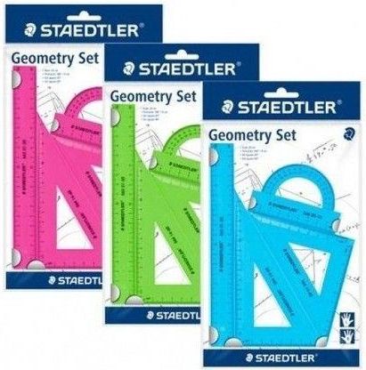 Zestaw kolorowych przyborów do matematyki, linijka, kątomierz, 2x ekierka Producent: STAEDTLER TEN EAN: 4007817027820 Zestaw przyborów pomocnych na lekcjach matematyki.Zestaw zawiera linijkę, kątomierz oraz dwie ekierki.