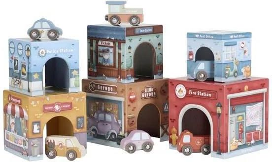 Little Dutch Wieża Do Układania 6 Drewnianych Autek Z Garażami Orzesze