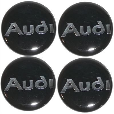 Naklejki na kołpaki emblemat Audi 50mm czarne srebrny napisOferowane naklejki 3D są silikonowe, wypukłe, są produkcji polskiej i charakteryzują się wysoką jakością - są elastyczne, trwałe i odporne na warunki atmosferyczne. Emblematy należy nakleić na płaskiej, czystej i odtłuszczonej powierzchni, zdejmując papier ochronny ze spodniej strony i dociskając na całej powierzchni. Doskonale pasują do oferowanych przez nas dekielków. Można je także wykorzystać przyklejając je na kołpaki.Cena dotyczy kompletu 4szt Zamienniki