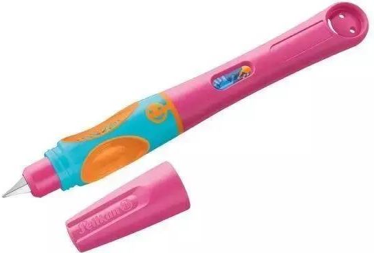 Pióro wieczne Griffix 4 dla praworęcznych Griffix to wyjątkowy system wspierający naukę pisania, który został opracowany z ekspertami w dziedzinie edukacji i naukowcami z Instytutu Fraunhofera. System ten jest oparty na czterech kolejnych przyborach do pisania (kredka świecowa, ołówek, pióro kulkowe, pióro wieczne). Choć te przybory różnią się od siebie, strefa chwytu pozostaje identyczna w każdym z nich. W efekcie nie ma potrzeby 'przestawiać się' czy 'uczyć od nowa'. Dzięki jednolitej strefie uchwytu każdy kolejny 'poziom' staje się tak naturalny jak to tylko możliwe. Pióro wieczne griffix - to ostatni etap nauki pisania. Cechy produktu Miękka, ergonomiczną strefę chwytu, która ułatwia pisanie Twojemu dziecku Posiada okienko, które wskazuje poziom atramentu Do pióra pasują wszystkie standardowe naboje atramentowe - 2 krótkie, 1 długi lub tłoczek W piórze jest jeden długi, niebieski nabój z motywem oraz naklejki do podpisania pióra Stalówka ze stali nierdzewnej o grubości M Opakowanie kartonowe Kolor: Lovely Pink producent: Pelikan kod produktu: PE-820240 Rodzaj: wieczne, praworęczne Stalówka: ze stali nierdzewnej, grubość M