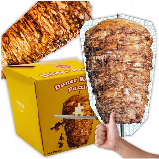 Puzzle Kebab – uczta dla oczu i umysłu! Czy marzysz o tym, aby połączyć swoją miłość do kebaba z pasją do układania puzzli? Nasze Puzzle Kebab to wyjątkowa łamigłówka, która przeniesie Cię w świat smaków i zapachów, nawet bez wychodzenia z domu! ▶️ DLACZEGO WARTO WYBRAĆ PUZZLE KEBAB? Realistyczny wygląd – Puzzle przedstawiają soczystego, idealnie przypieczonego kebaba w skali 1:1. 500 elementów wyzwania – Sprawdź swoje umiejętności i poczuj satysfakcję z ułożenia tego smakowitego obrazu. Doskonały prezent – Świetny pomysł na zabawny prezent dla miłośników kebabów, fanów łamigłówek i tych, którzy mają poczucie humoru. Estetyczne opakowanie – Puzzle zapakowane są w stylowe pudełko przypominające opakowanie na kebaba na wynos. Nie tuczą! – Możesz spędzić godziny nad kebabem, nie martwiąc się o kalorie! ▶️ DLACZEGO WARTO MIEĆ TE PUZZLE? Bo to połączenie humoru, wyzwania i miłości do kebaba! Bo to idealny sposób, aby spędzić czas w gronie przyjaciół lub rodziny. Bo to prezent, który zawsze wywoła uśmiech! ▶️ SPECYFIKACJA Liczba elementów: 500+ Rozmiar po ułożeniu: 60 x 38 cm Opakowanie: pudełko na wynos Wzór: kebab na rożnie FAQ – Najczęściej zadawane pytania 1. Czy puzzle naprawdę wyglądają jak kebab? Tak! Dzięki wysokiej jakości nadrukowi i realistycznym kolorom, efekt jest niesamowity – kebab wygląda apetycznie i trudno oderwać od niego wzrok. 2. Czy puzzle są trudne do ułożenia? To wyzwanie dla prawdziwych pasjonatów puzzli i kebabów! Monochromatyczne fragmenty mogą sprawić trudność, ale satysfakcja po ułożeniu jest ogromna. 3. Czy puzzle pachną kebabem? Niestety nie – ale kto wie? Może Twój mózg sam podsunie Ci ten zapach podczas układania! 4. Czy to dobry prezent dla fana fast foodu? Oczywiście! Jeśli znasz kogoś, kto mógłby jeść kebaba codziennie, to będzie dla niego idealny, humorystyczny prezent.