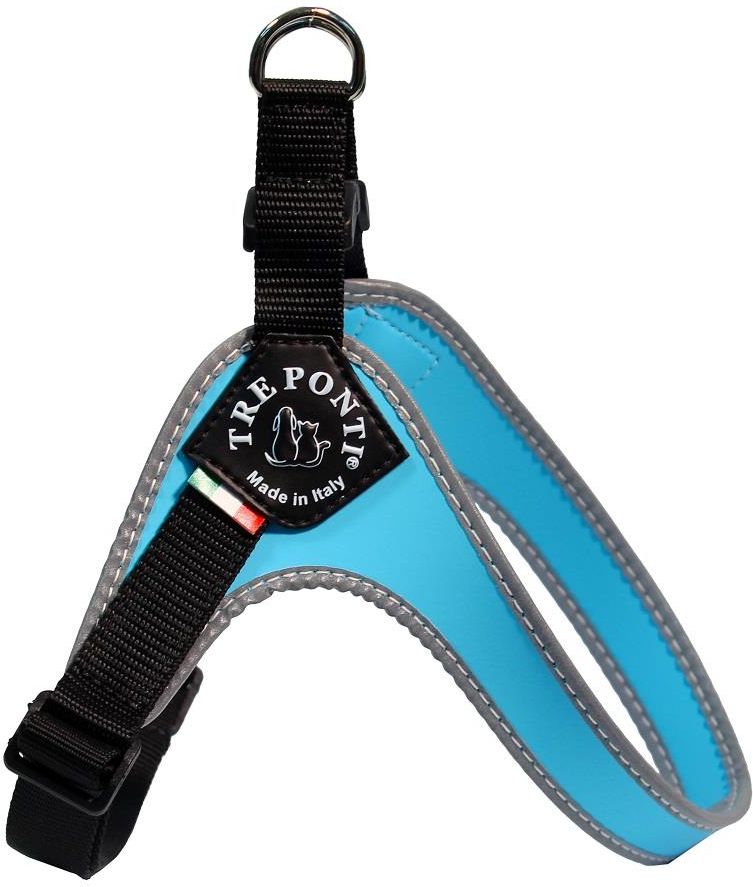 TRE PONTI - WŁOSKA MARKA Firma Tre Ponti mająca siedzibę w Treviso, niedaleko Wenecji, jest wiodącym producentem akcesoriów dla zwierząt domowych. Swój sukces na rynku zawdzięcza wysokiej jakości materiałom i nowoczesnym cyklom produkcyjnym odbywającym się w całości we Włoszech. Najważniejsze cechy szelek TRE PONTI Easy Fit: praktyczne, łatwe do założenia, dopasowania i zdjęcia (idealne dla psów nie lubiących wkładać szelek przez głowę); wykonane z trwałego, antyalergicznego materiału (obszyte odblaskową taśmą, świecącą w ciemności); nie przycinają i nie wyrywają sierści; bardzo lekkie, nie obcierają psa pod pachami; unikalny, elegancki design; wyprodukowane we Włoszech. Polecamy je pieskom i kotom w każdym wieku, a szczególnie młodym i tym, które mają już swoje lata. Obroża nawet ta najlepsza i najbardziej komfortowa nie jest tak bezpieczna i wygodna jak szelki. Nie uciskają gardła, nie powodują ewentualnych uszkodzeń krtani czy kręgosłupa. Dokładnie obejmują korpus zwierzęcia ułatwiając prowadzenie go na smyczy. W szelkach zapewniamy komfort i bezpieczeństwo podczas spaceru, który staje się przyjemnością zarówno dla czworonoga jak i właściciela. Szelki wykonane są z wytrzymałego, antyalergicznego materiału, który nie chłonie zapachu ani wilgoci. Szelki są bardzo lekkie, nie obcierają, nie przyczepiają się do sierści. Szelki obszyte są taśmą odblaskową, dzięki czemu Twój zwierzak będzie widoczny nawet w ciemności. Zapięcie na klamrę oraz uchwyt (wykonany ze stali nierdzewnej) do przypięcia do smyczy znajduje się na grzbiecie. Szelki wyprodukowane i opatentowane we Włoszech. Wykonane z materiałów najwyższej jakości, w sposób staranny i precyzyjny. Dostępne rozmiary: 1 - 32-45cm - Chihuahua, Mini York 1,5 - 33-47cm - York, Maltańczyk 2 - 40-56cm - Pinczer Mini, Maltańczyk, Szpic 2,5 - 43-58cm - Pinczer, Jack Russel Terrier 3 - 50-67cm - Shih Tzu, Pekińczyk, Mops 3,5 - 54-69cm - Buldog Francuski, West Hightand White Terrier 4 - 61-77cm - Beagle, Buldog Angielski Dostępne kolory: czerwony; moro różowe; niebieski; czarne; moro; różowe.