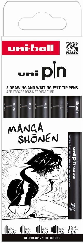 Uni Cienkopis Kreślarski Pin 200 Manga Shonen Czarny Różne Grubości 5Szt. Orzesze