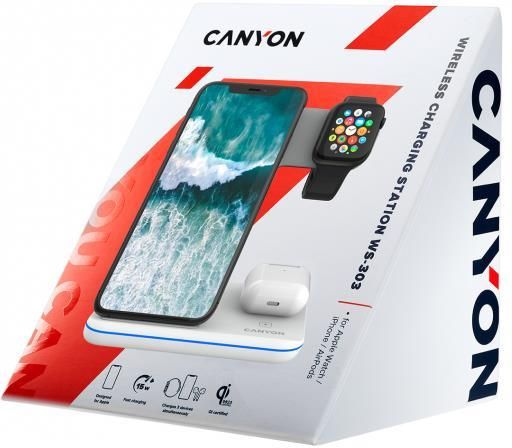 Bezprzewodowa ładowarka Canyon 3w1 do telefonu Apple Watch Airpods (CNS-WCS303W) Biała Orzysz