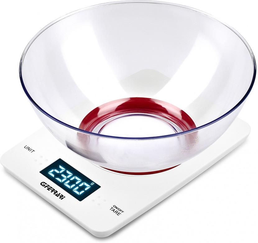 WAGA KUCHENNA G3FERRARI G20071 Cyfrowa waga kuchenna G3ferrari G20071 Sfera to urządzenie charakteryzujące się minimalistycznym designem, przemyślaną konstrukcją oraz dużą funkcjonalnością. Produkt posiada przeźroczystą misę z wytrzymałego tworzywa sztucznego, ułatwiającą odmierzanie porcji i ważenie. Dzięki dużej pojemności (ok. 5 kg) możliwe odważenie większej ilości produktów, a precyzyjny pomiar (do 1 g) pozwala na precyzyjne odmierzenie składników. Urządzanie posiada system automatycznego wyłączania - wdrożone w celu zapobiegnięciu zbyt szybkiej zużycia baterii. Duży, wygodny i czytelny wyświetlacz docenią osoby starsze. Oprócz wagi wskazuje również poziom wyładowania baterii oraz zakomunikuje przeciążenie wagi. Zasilanie: 1 bateria CR2032 Misa: Tworzywo sztuczne Typ wagi: Elektroniczna Maksymalne obciążenie: 5 kg Dokładność pomiaru: 1g Wyświetlacz: LCD Wymiary: 21.5 x 2 x 15 cm Waga: 340 g Funkcje: Wskaźnik przeciążenia wagi Wskaźnik rozładowania baterii Tara DANE TECHNICZNE Zasilanie: 1 bateria CR2032 Misa: Tworzywo sztuczne Typ wagi: Elektroniczna Maksymalne obciążenie: 5 kg Dokładność pomiaru: 1g Wyświetlacz: LCD Wymiary: 21.5 x 2 x 15 cm Waga: 340 g Funkcje Wskaźnik przeciążenia wagi Wskaźnik rozładowania baterii Tara