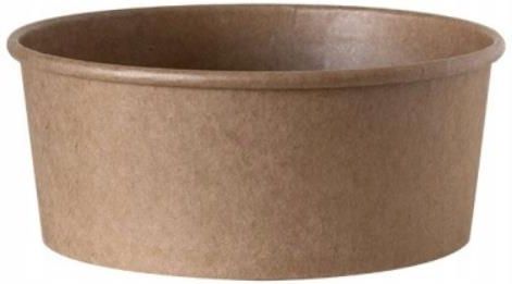 Ekologiczna miska wykonana z papieru w kolorze brązowym. Materiał powleczony jest specjalnie przystosowaną powłoką, która nie przepuszcza tłuszczu. Świetnie nadadzą sie do gorących, płynnych dań zarówno w lokalach gastronomicznych jak i na wynos. *Pojemność: 750ml *Średnica: 149mm *Wysokość: 60mm *Opakowanie: 50szt *Możliwość szczelnego zakmnięcia