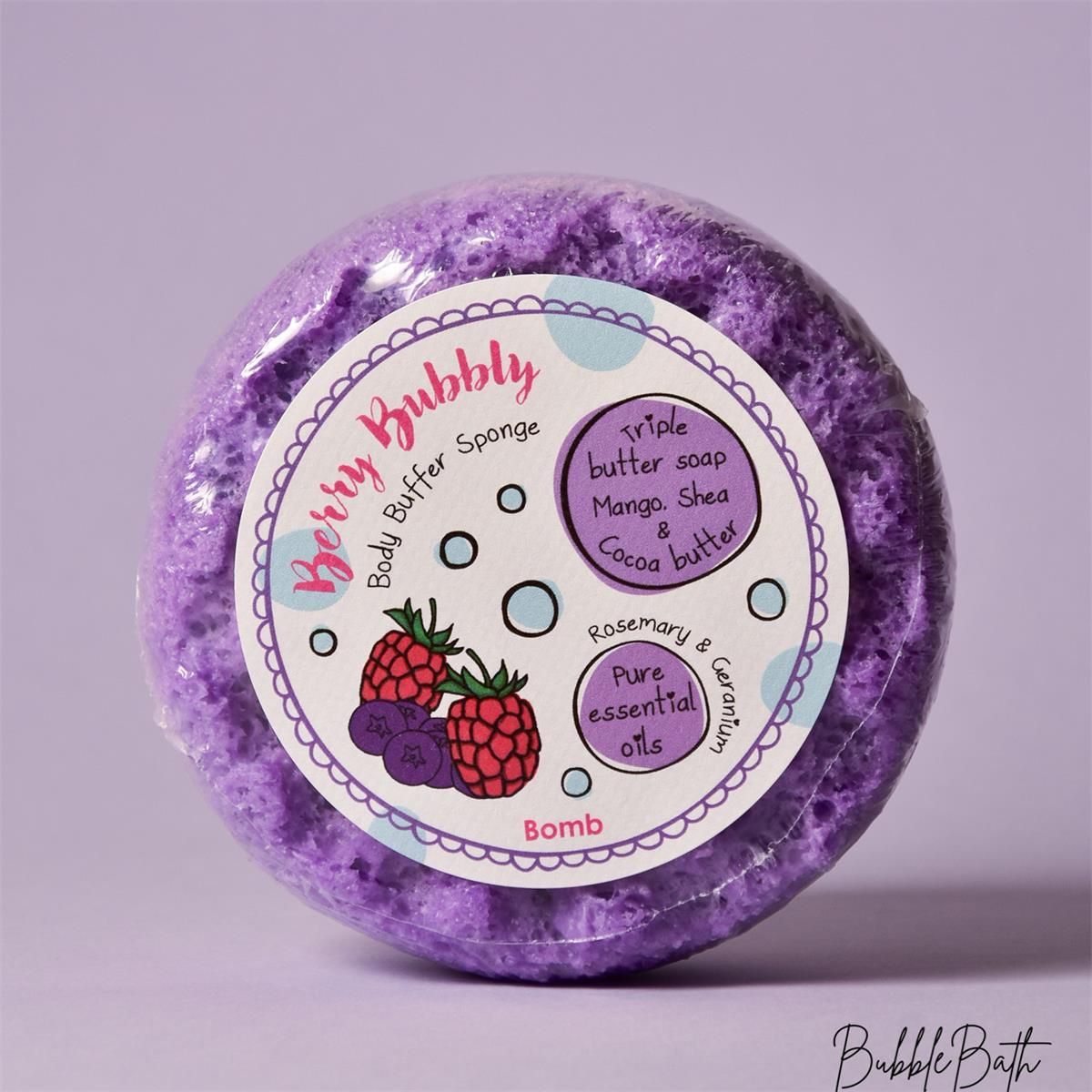 Bomb Cosmetics Body Buffer Sponge Gąbka pod prysznic z naturalnymi olejkami eterycznymi Berry Bubbly 200 g Osieczna