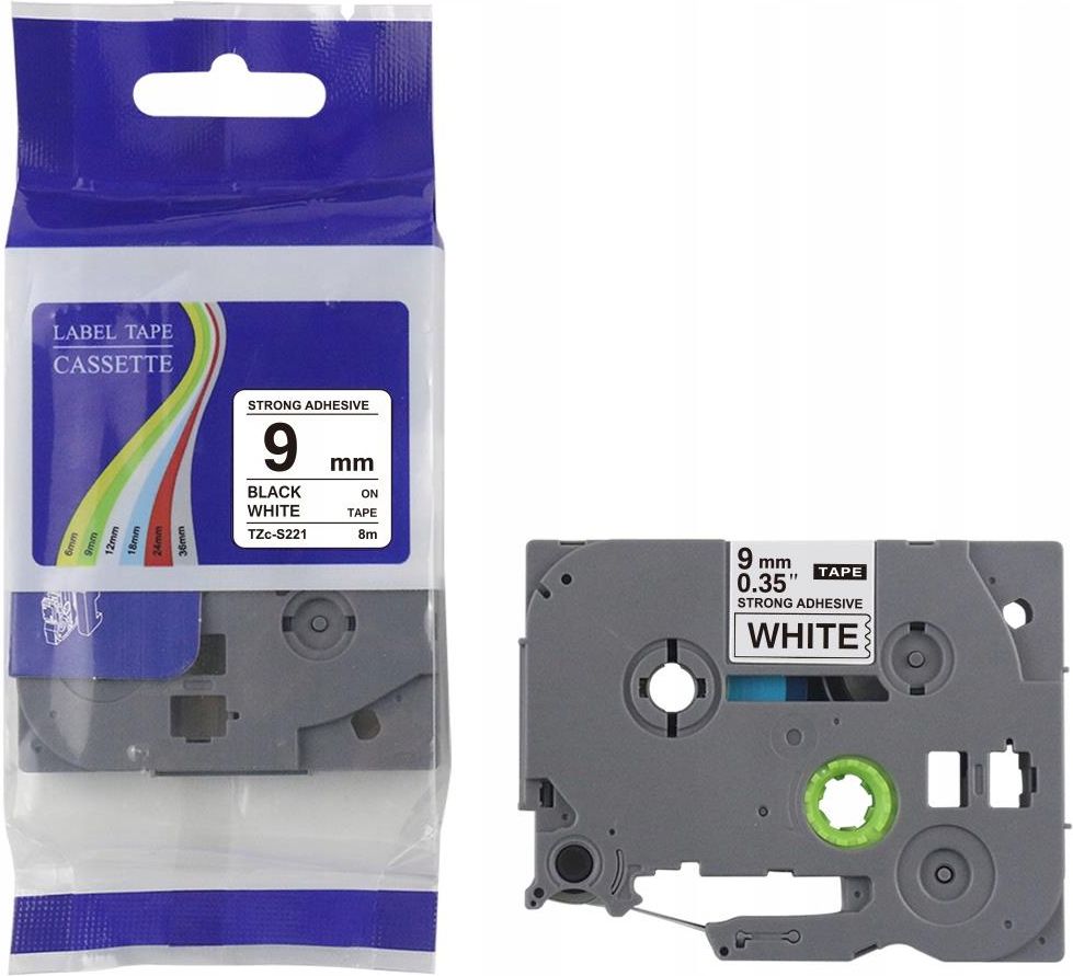 Fotoenergia Taśma do Brother Tze-S221 9mm 8m biała mocny klej Osieczna