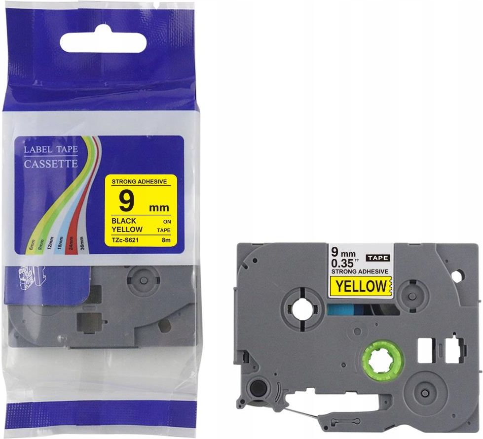 Najwyższej jakości zamienniki taśm do drukarek: MODEL: TZ-S621, AZe-S621, EZe-S621, TZ2-S621, TZe-S621 taśma laminowana 9mm x 8m żółta/czarny (EXTRA MOCNY KLEJ) TECHNIKA DRUKU: TERMO-TRANSFER RODZAJ KLEJU: EXTRA MOCNY POWIERZCHNIA APLIKACJI: plastik, papier, metal, drewno, szkło ODPORNE NA DZIAŁANIE: wody, oleju, łagodnych rozpuszczalników, promieni UV, ścierania Do oznaczania sprzętu, narzędzi, środków trwałych, kodów kreskowych, symboli bezpieczeństwa itp. Do stosowania w trudnych i ekstremalnych warunkach. KOMPATYBILNY ZE WSZYSTKIMI DRUKARKAMI BROTHER P-TOUCH: PT-100, PT-110, PT-55BM, PT-55S, PT-65, PT-65SB, PT-65SCCP, PT-65SL, PT-65VP, PT-70, PT-70BBVP, PT-70BM, PT-70BMH, PT-70HK, PT-70HOL,PT-70HOT, PT-70SP, PT-70SR, PT-80, PT-80SCCP, PT-85, PT-90, PT-H105, PT1010 i inne Klej zachowuje swoje właściwości w zakresie temperatur od -19 do +90 stopni Celsjusza. Mogą być stosowane wewnątrz jak i na zewnątrz. INNE MODELE TAŚM: Kolor taśmy/Kolor nadruku Szerokości: 6mm | 9mm | 12mm | 19mm | 24mm | 36mm Taśmy standardowe przezroczysty/czarny 111 | 121 | 131 | 141 | 151 | 161 biały/czarny 211 | 221 | 231 | 241 | 251 | 261 czerwony/czarmy 411 | 421 | 431 | 441 | 451 | 461 niebieski/czarny 511 | 521 | 531 | 541 | 551 | 561 zółty/czarny 611 | 621 | 631 | 641 | 651 | 661 zielony/czarny 711 | 721 | 731 | 741 | 751 | 761 srebrny/czarny 911 | 921 | 931 | 941 | 951 | 961 złoty/czarny 811 | 821 | 831 | 841 | 851 | 861 przezr./czarny mat M11 | M21 | M31 | M41 | M51 | M61 srebrny/czarny M911 | M921 | M931 | M941 | M951 | M961 przezroczysty/czerwony 112 | 122 | 132 | 142 | 152 | 162 biały/czerwony 212 | 222 | 232 | 242 | 252 | 262 przezroczysty/niebieski 113 | 123 | 133 | 143 | 153 | 163 biały/niebieski 213 | 223 | 233 | 243 | 253 | 263 czarny/złoty 314 | 324 | 334 | 344 | 354 | 364 przezroczysty/biały 115 | 125 | 135 | 145 | 155 | 165 czarny/biały 315 | 325 | 335 | 345 | 355 | 365 czerwony/biały 415 | 425 | 435 | 445 | 455 | 465 niebieski/biały 515 | 525 | 535 | 545 | 555 | 565 zielony/biały 715 | 725 | 735 | 745 | 755 | 765 Kolor taśmy/Kolor nadruku Szerokości: 6mm | 9mm | 12mm | 19mm | 24mm | 36mm Taśmy fluorescencyjne fluo. pomarańcz/czarny B11 | B21 | B31 | B41 | B51 | B61 fluo. zółty/czarny C11 | C21 | C31 | C41 | C51 | C61 fluo. zielony/czarny D11 | D21 | D31 | D41 | D51 | D61 Taśma z mocnym klejem przezroczysty/czarny S111 | S121 | S131 | S141 | S151 | S161 biały/czarny S211 | S221 | S231 | S241 | S251 | S261 czerwony/czarmy S411 | S421 | S431 | S441 | S451 | S461 niebieski/czarny S511 | S521 | S531 | S541 | S551 | S561 zółty/czarny S711 | S721 | S731 | S741 | S751 | S761 zielony/czarny S611 | S621 | S631 | S641 | S651 | S661 przezroczysty/biały S115 | S125 | S135 | S145 | S155 | S165 srebny/czarny mat SM911 | SM921 | SM931 | SM941 | SM951 | SM961 Taśmy o zwiększonej elastyczności przezro./czarny FX111 | FX121 | FX131 | FX141 | FX151 | FX161 biały/czarny FX211 | FX221 | FX231 | FX241 | FX251 | FX261 biały/czarny FX411 | FX421 | FX431 | FX441 | FX451 | FX461 zółty/czarny FX611 | FX621 | FX631 | FX641 | FX651 | FX661 zielony/czarny FX711 | FX721 | FX731 | FX741 | FX751 | FX761 biały/czerwony FX212 | FX222 | FX232 | FX242 | FX252 | FX262 biały/niebieski FX213 | FX223 | FX233 | FX243 | FX253 | FX263 czerwony/biały FX415 | FX425 | FX435 | FX445 | FX455 | FX465 niebieski/czarny FX511 | FX521 | FX531 | FX541 | FX551 | FX561