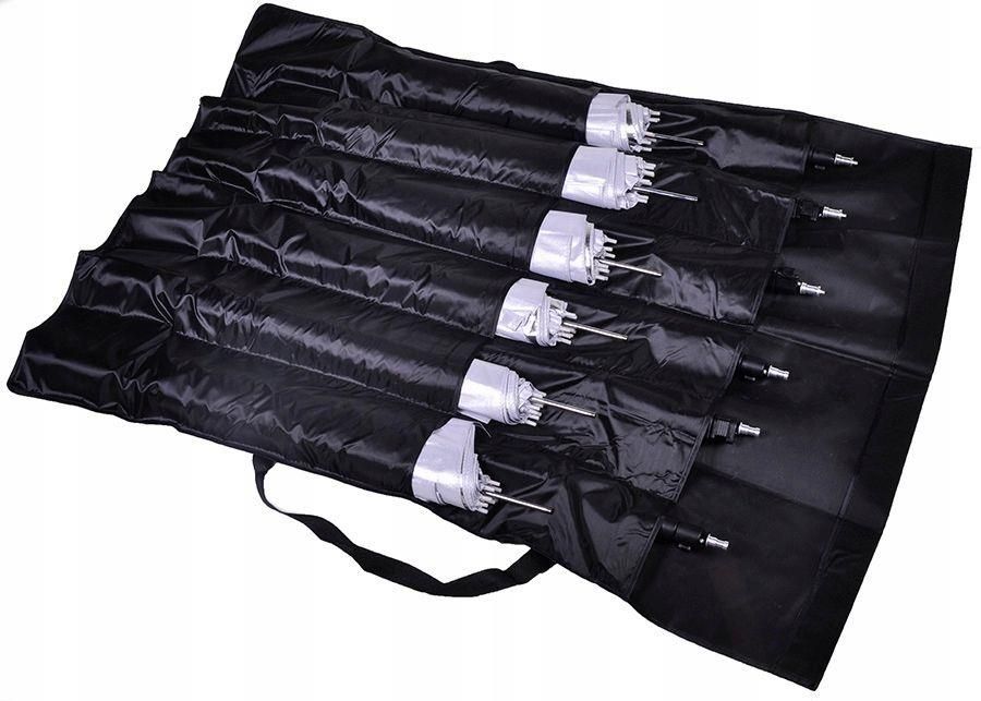 Uniwersalny futerał na 6 parasolek i 6 statywów Pojemny futerał ochronny na statywy studyjne oraz parasolki fotograficzne, które po złożeniu nie będą dłuższe niż 113 cm, a ich średnica nie przekroczy 16 cm. Wytrzymały materiał i mocne szwy 12 przegródek Duża pojemność Uchwyt do przenoszenia …