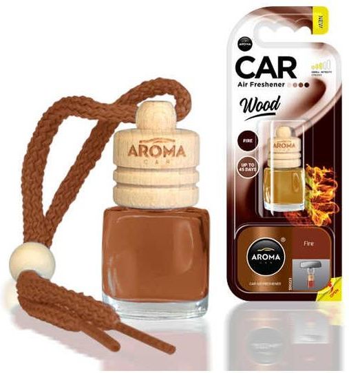 FIRE Zapach samochodowy WOOD zawieszka AROMA Car 6ml Wood to klasyczny, samochodowy odświeżacz powietrza składający się z bukowego korka i szklanej butelki z zamkniętą w jej wnętrzu kompozycją zapachową. Innowacyjne opakowanie umożliwia łatwy dostęp do produktu. Do zastosowania na wewnętrznym lusterku samochodu. Opis technologi wood – drewna bukowego: Nośnikiem zapachu w technologii wood jest koreczek wykonany w 100% z drewna bukowego, który jest naturalnym materiałem o silnie absorpcyjnych właściwościach, przez co świetnie wchłania olejki zapachowe i utrzymuje je w swojej strukturze przez długi czas. Kompozycja zapachowa oddawana jest stopniowo poprzez powolne odparowywanie jej z drewnianej nakrętki. Sposób użycia: By cieszyć się zapachem zamkniętym w buteleczce, należy dokładnie zakręcony produkt odwrócić i nasączyć drewnianą nakrętkę perfumami znajdującymi się wewnątrz butelki. Przed pierwszym użyciem należy zdjąć drewnianą nakrętkę oraz usunąć plastikową zatyczkę. Po nasączeniu koreczka, nałożyć ponownie zatyczkę, uniemożliwi ona wówczas przypadkowy wyciek olejku. Uwaga! Istnieje możliwość dostosowania intensywności zapachu w zależności od nasączenia drewnianego koreczka olejkami zapachowymi. (przy dłuższym czasie odwrócenia butelki mocniej pachnie , przy krótszym delikatniej).