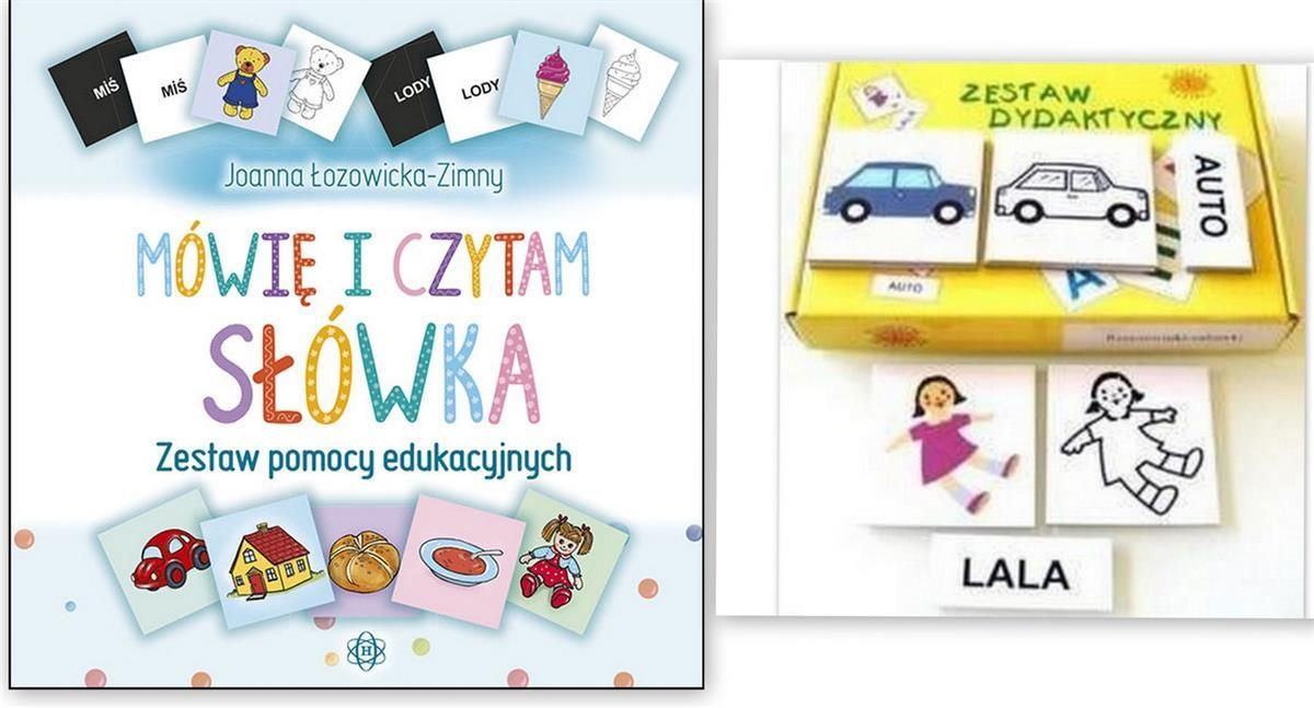Zestaw. Rzeczowniki. Zabawki Zestaw plakietek i etykietek służy do przenoszenia obrazów z rzeczywistości na obrazki, uświadamianiu dziecku, że słowo (napis) oznacza konkretną rzecz, czynność czy sytuację oraz do nauki czytania. Uczy dziecko rozumienia pytań oraz udzielania odpowiedzi. Zestaw ten służy do nauki dopasowywania obrazków do przedmiotów oraz czytania pełnymi wyrazami (czytanie globalne), odpowiedzi na pytania: Co to?, Czego nie ma? Zestaw zawiera 8 elementów obrazkowych 4 elementy opisowe opis proponowanych ćwiczeń Materiał: tektura Opakowanie: woreczek + pudełko tekturowe