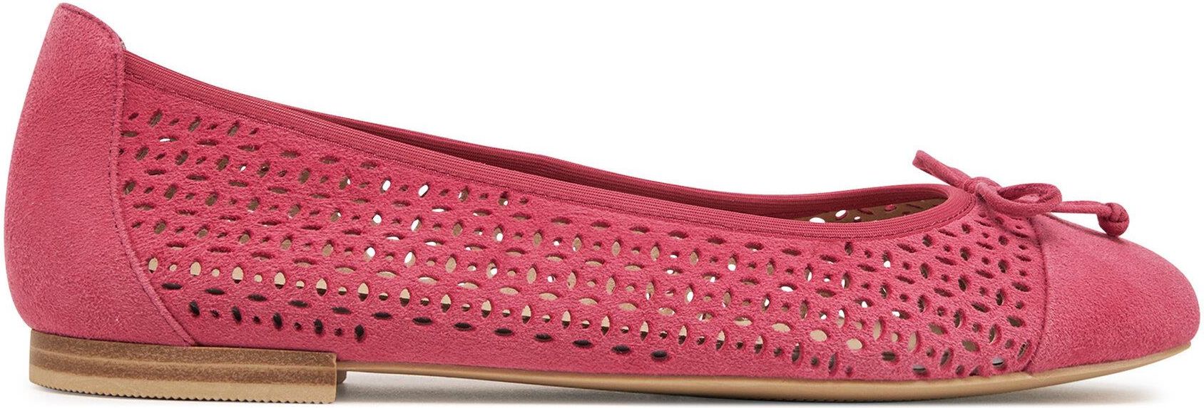 Różowe baleriny marki Caprice to kwintesencja kobiecego stylu i wygody. Wykonane ze skóry naturalnej zamszowej, zachwycają eleganckim wyglądem i miękkością, która otula stopy. To idealny wybór dla kobiet, które cenią sobie klasykę w nowoczesnym wydaniu. Subtelna kolorystyka sprawia, że baleriny doskonale pasują zarówno do casualowych, jak i bardziej formalnych stylizacji. Niezależnie od okazji, te buty dodadzą Twoim krokom lekkości i zapewnią niezbędny komfort przez cały dzień. Postaw na ponadczasową elegancję!