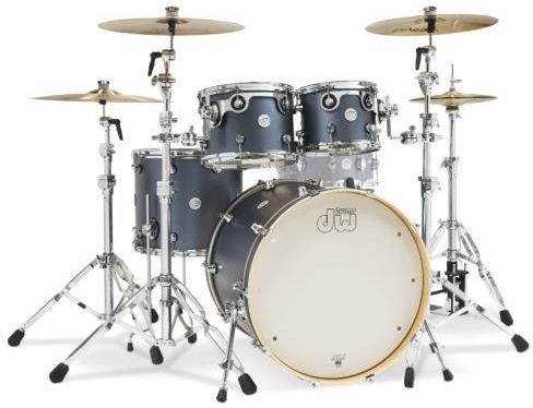 Zestaw perkusyjny marki DW z serii Design. Konfiguracja: Bęben basowy: 22" x 18" Tom Tom: 10" x 8" Tom Tom: 12" x 9" Floor Tom: 16" x 14" Specyfikacja: Osprzęt: Chrom Kolor: Blue Slate Korpusy: 100% Maple (8 warst klonu) HVLT (Vertical Low shell Timbre z poziomą warstwą zewnętrzną) Potrójnie wzmacniane obręcze Niezależne zawieszenie tomów STM System Śrub z Zagęszczonym Gwintem „True-Pitch” STM - Niezależny System Zawieszenia Tomów Opatentowany przez firmę DW system STM, czyli niezależny system zawieszenia tomów, umożliwia bębnom swobodne wibracje, dopuszczając maksymalny rezonans, przy jednoczesnym zachowaniu stabilności bębna. Tłumienie rezonansu bębna jest zminimalizowane, a strojenie bębna zostało maksymalnie uproszczone. W systemie tym nie ma żadnych podkładek, tulei lub też innych elementów, które mogłyby hamować rezonans bębna. System Śrub z zagęszczonym Gwintem „True-Pitch” By dać perkusistom większą kontrolę nad brzmieniem, firma DW stworzyła system śrub z zagęszczonym gwintem „ True-Pitch”. Śruby cechują się 5mm gwintami, zamiast 12/24, co jest standardem w innych bębnach. Dla porównania w systemie True-Pitch na każde 0,8 mm przypada 1 gwint (około 20% więcej gwintów), podczas gdy w innych bębnach 1 gwint przypada na każde 1.05mm. Rezultatem jest wymagający większej staranności proces strojenia. *Shell set: zestaw nie zawiera talerzy, statywów oraz hardware
