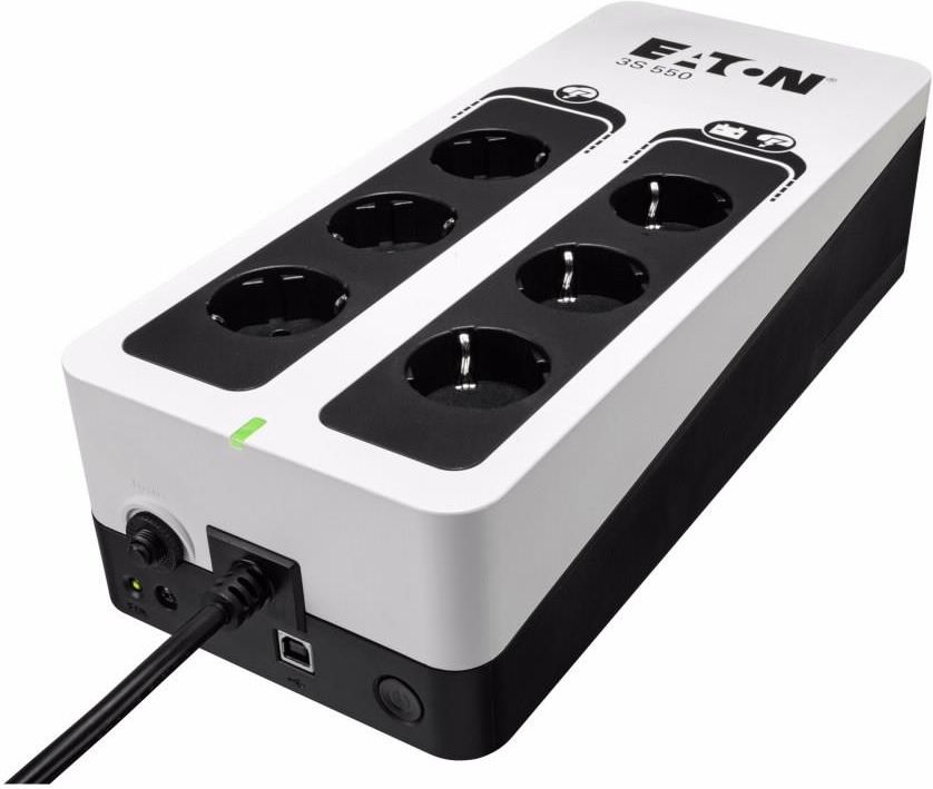 Eaton 3S550D Zasilacz awaryjny UPS Eaton 3S550D został zaprojektowany dla użytkowników domowych i małych firm. Atrakcyjny wygląd i błyszczące wykończenie sprawiają, że 3S idealnie wkomponuje się w nowoczesną przestrzeń mieszkań, domów i biur. Zapewnia ciągłą pracę urządzeń podczas zaniku zasilania z sieci elektrycznej i zaawansowaną ochronę przepięciową, która zapobiega uszkodzeniom w wyniku uderzenia pioruna lub przypadkowego przepięcia w sieci. Jest bardzo cichy. Dostarcza moc pozorną 550 VA, co przekłada się na 330 W mocy czynnej. Dzięki temu zapewnia bezpieczeństwo urządzeń takich jak TV, dekoder cyfrowy, komputer stacjonarny, monitor, router, modem, kasa fiskalna i inne urządzenia sieciowe. Podłączanie urządzeń Eaton 3S550D posiada osiem gniazd wyjściowych typu DIN (SCHUKO). Trzy gniazda zapewniają podtrzymanie bateryjne z ochroną przeciwprzepięciową. Tutaj możemy podpiąć kluczowe urządzenia takie jak TV, komputer PC itd. Z kolei pozostałe trzy gniazda zapewniają ochronę przepięciową, gdzie możemy podpiąć urządzenia peryferyjne np. drukarkę. Zasilacz UPS ma zamontowany na stałe kabel zasilający o długości 1,5m.  Uniwersalna obudowa Gdy zabraknie miejsca pod biurkiem lub w innej części pomieszczenia, warto zwrócić uwagę, że Eaton 3S550D posiada uniwersalną obudowę. Pozwala to na pracę poziomą lub pionową urządzenia, a dzięki przygotowanym otworom z tyłu obudowy, również łatwy montaż na ścianie. Oprogramowanie Wbudowany port USB zgodny z HID pozwala na podłączanie i zarządzanie zasilaczem UPS z poziomu komputera PC. Darmowe i intuicyjne oprogramowanie Eaton UPS Companion umożliwia bezpieczne wyłączanie systemu, monitorowanie podstawowych parametrów i konfigurację ustawień UPS oraz podaje pomiar zużycia energii. Akumulator Urządzenie posiada wymienny, kompaktowy akumulator. Zimny start umożliwia używanie urządzenia podłączonego do UPS mimo braku prądu w sieci. Pozwoli to na zgranie potrzebnych danych z komputera lub również można np. włączyć lampkę dla dzieci, aby dokończyły zadania domowe. UPS pracuje do wyczerpania akumulatora. Funkcja ta jest niezwykle przydatna i często wykorzystywana przez użytkowników. O jakość baterii dba automatyczny test baterii oraz ochrona przed głębokim rozładowaniem. Wskaźnik wymiany baterii sygnalizuje, że należy wymienić akumulator. Specjaliści producenta zadbali o niezwykle prosty sposób wymiany baterii. Nie potrzeba żadnych narzędzi, śrubokrętów czy kluczy. Wystarczy wysunąć pokrywę, która ochrania baterię. Wszystko pod kontrolą. Tylko pamiętaj o wymianie baterii przy wyłączonym urządzeniu. Łatwe, prawda? Opinia specjalisty: "Rozwiązanie Eaton UPS 3S550D zapewnia moc 330 Watów. Sprawdzi się zarówno w warunkach domowych jak i biurowych. Niejeden raz może uratować użytkowników w przypadku zaniku zasilania. Oglądasz ciekawy mecz, akcja podbramkowa i nagle przerwa w dostawie prądu! Brzmi groźnie? Nie dla 3S550D. Zapewni bezprzerwowe oglądanie transmisji i podtrzyma niezastąpione wrażenia."  Adrian Toborek, Inżynier Sprzedaży Eaton Specyfikacja Moc pozorna: 550 VA Moc skuteczna: 330 W Napięcie wejściowe: 161 - 284 V Gniazda wyjściowe: SCHUKO - 6 szt. Sygnalizacja pracy: Diody LED Typ obudowy: Tower Komunikacja: port USB (zgodny z HID) Dodatkowe informacje: Zimny start, Wyłącznik zasilania z możliwością resetu, Test baterii, Ochrona przed głębokim rozładowaniem. Wysokość: 83,5 mm Szerokość: 140 mm Głębokość: 325 mm Waga: 3,1 kg Dołączone akcesoria: UPS z podłączonym kablem zasilającym, Podręcznik użytkownika, Instrukcja bezpieczeństwa, kabel USB Gwarancja: 24 miesiące (gwarancja producenta) Kod producenta: 3S550D