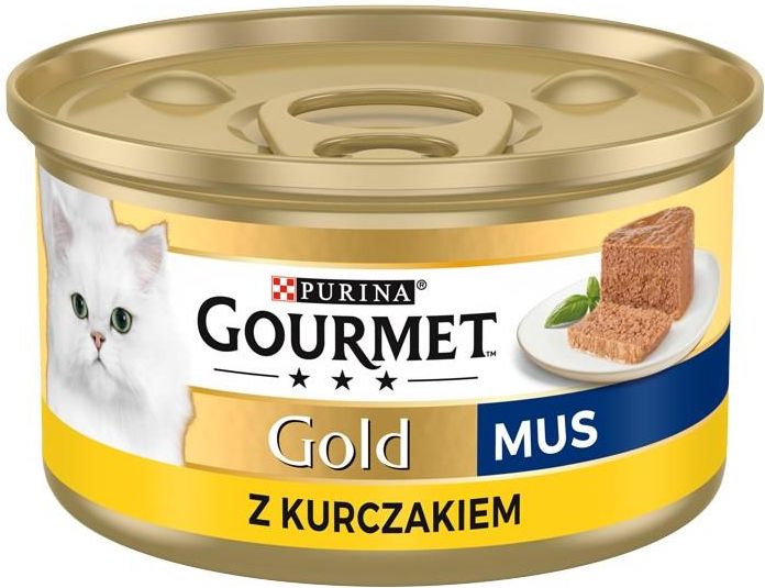 GOURMET GOLD Mus z kurczakiem 6x85g Opis produktu Rozpieść Twojego kota niezwykłym Musem Gourmet Gold: Karma pełnoporcjowa Wysokiej jakości składniki Unikalna receptura z delikatnymi pasztecikami Urzekające doznania smakowe, również dla nieco rozpieszczonych kotów Niepowtarzalna różnorodność …