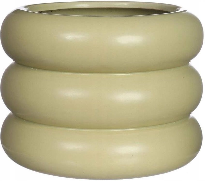 „Puszysta” osłonka ceramiczna z serii Chubby to stylowy dodatek, który łączy nowoczesne wzornictwo z miękkimi, przyjemnymi dla oka formami. Jej charakterystyczny, tłoczony kształt przypominający pierścienie nadaje jej wyjątkowego uroku, a matowe, oliwkowozielone wykończenie wnosi do wnętrza naturalną elegancję i subtelny akcent kolorystyczny. Osłonka została wykonana z dobrej jakości ceramiki, co gwarantuje trwałość i piękny wygląd przez długi czas. Jej wysokość wynosi 12,5 cm, a średnica 16,2 cm, co sprawia, że idealnie sprawdzi się jako oprawa dla średnich roślin doniczkowych czy ozdobnych kompozycji. Od spodu wyposażona jest w trzy filcowe stopki, które chronią powierzchnię mebli przed zarysowaniami. Osłonka nie jest mrozoodporna i nie posiada otworu drenażowego, dlatego najlepiej prezentuje się w aranżacjach wewnętrznych, dodając wnętrzom ciepła i wyjątkowego charakteru. To nie tylko doniczka – to designerski element dekoracyjny, który pięknie podkreśli urok Twoich roślin i stanie się ozdobą każdego wnętrza.🌸 Osłonka nie zawiera żadnych dodatków w postaci roślin i ozdób. Wzór: 38035 CHUBBY Produkt 1 x osłonka Wymiary wysokość 12,5 cm średnica górna z rantem 16,2 cm średnica górna bez rantu 12,2 cm średnica podstawy 16,2 cm (średnica wnętrza 12,2 cm) waga 1,162 kg Materiał ceramika Użytkowanie do przechowywania kwiatów